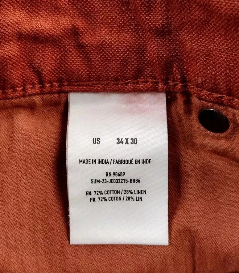 Todd Snyder Pants Men's 34x29 Orange Red Conker Linen Blend Slim Fit 5 Pocket