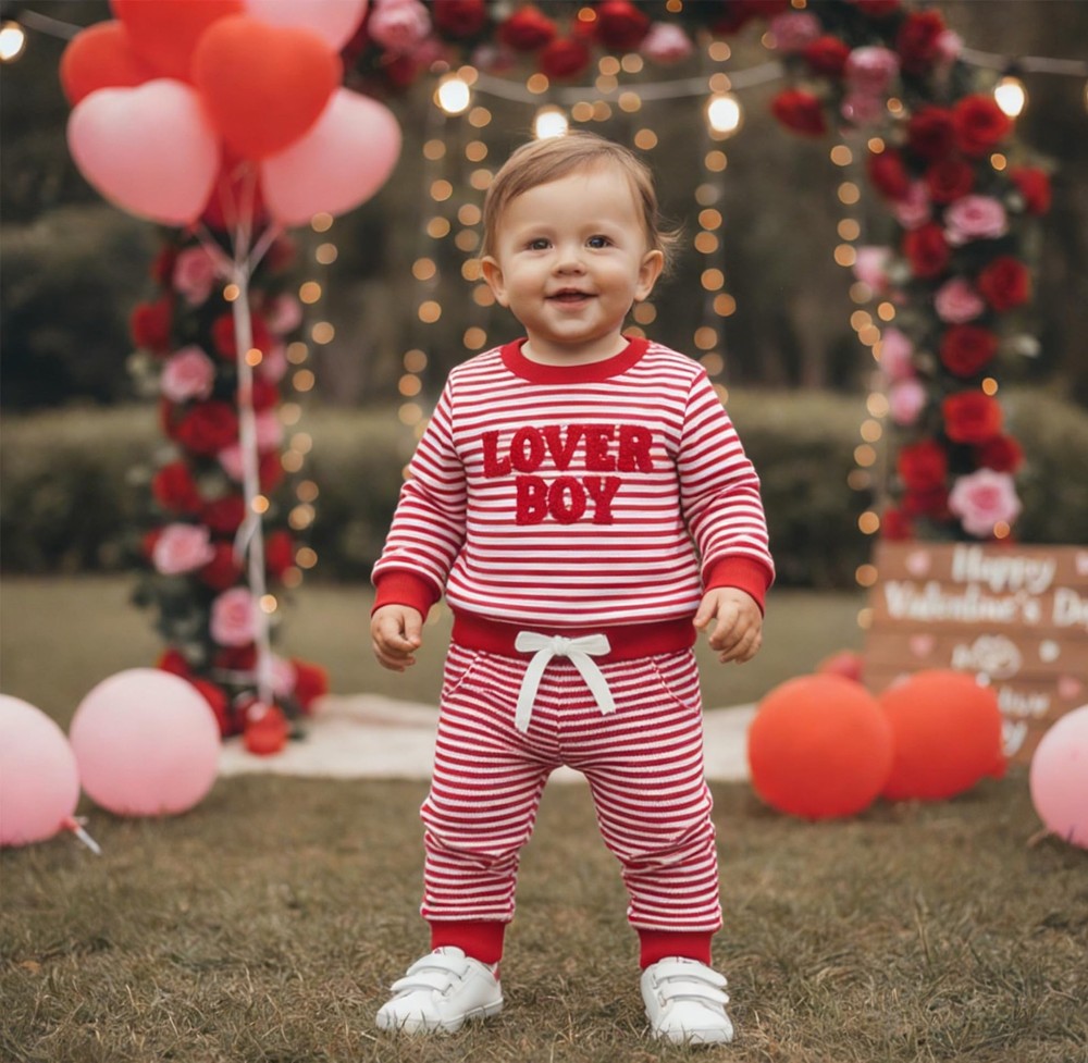 Toddler Baby Boy Valentines Outfit Crewneck Sweatshirts Casual Pants Cute Val...