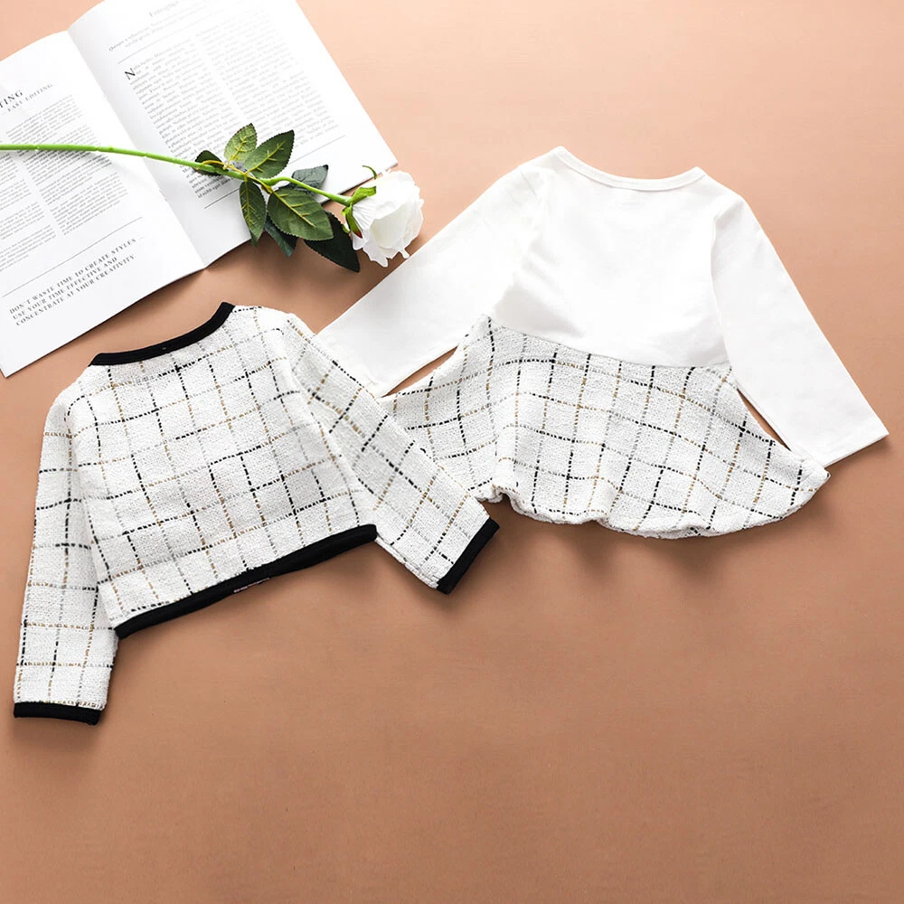 Description Features: Condition: 100% Brand New Material: Cotton Blend Style:Casual Pattern Type:Plaid Collar Type:Round Neck Sleeve Length:Long Sleeve Sleeve Type: Regular Occasion: Casual, Everyday, Party Size chart: Recommend Age Top Length CM Top Length Inch Bust CM Bust Inch Skirt Length CM Skirt Length Inch 6-12 Months 25 9.84 52 20.48 33 12.99 1-2 Years 26 10.24 54 21.26 35 13.78 2-3 Years 27 10.63 56 22.04 37 14.57 3-4 Years 28 11.02 58 22.84 39 15.35 4-5 Years 29 11.42 60 23.12 41 16.14 Package Content: 1 x Coats 1 x Dress NOTE: 1.Please compare the detail sizes with yours before you buy!!! 2.Colors may be slightly different depending on computer and monitor settings 3.Please allow 1-3cm differs due to manual measurement, thanks (All measurement in cm and please note 1cm=0.39inch) Thanks for your understanding. Detail Image Delivery Time: USA To USA: shipped by USPS, 2-4 working days UK&AU To UK&AU: shipped by Royal Mail , 1-3 working days China To USA: shipped by China Post Epacket, 7-15 working days China To UK&AU: shipped by China Post Epacket, 15-25 working days China To Other Countries: shipped by China Post Epacket, 25-35 working days Shipments & Payment: Your order will be handled within 1-2 business days after receiving your clear payment. Weekend excluded Tracking number will be provided for you ASAP. We accept PayPal. Return Policy: If you are not satisfied with the items, you can return for refund within 30 days after receives it. Buyer pay the shipping cost for return. contact me for the return address, we will refund your money within 2 days after receive the returned items. About Feedback: I appreciate your Positive comment and 5 star DSR(Detailed Seller Ratings) if you are satisfied with the items and my job, I will do better because of your encouragement. Also I will leave Positive feedback to you once I receive yours, thank you very much! Please do Not leave Neutral or Negative feedback and low DSR if you are not happy with the transaction, I think most problems can be resolved through sincere communication. We try our best to reply to your emails ASAP. However, due to high volume of daily incoming emails and time zone difference, we may not be able to reply your emails immediately. Please allow 1-2 business day for us to reponse. Please feel free to contact me if you have any question, I'll try my best to solve it for you.