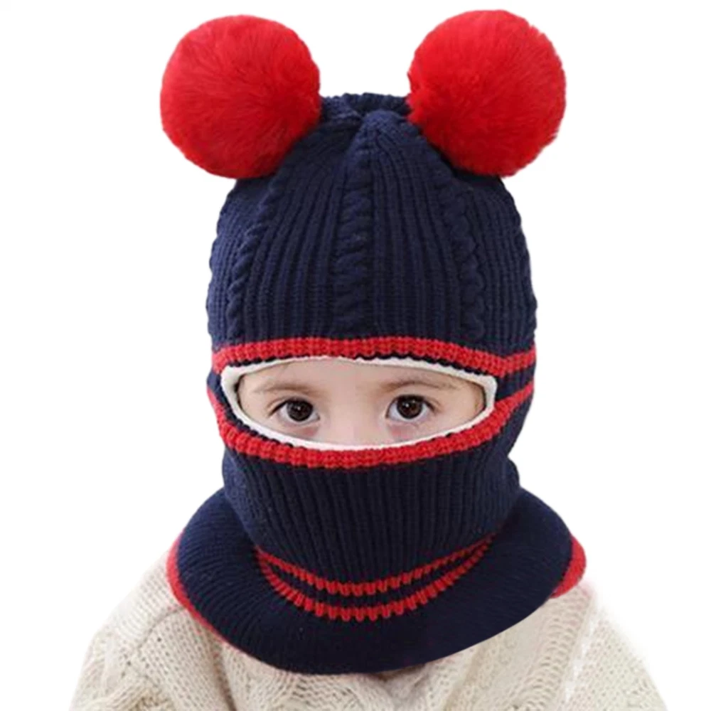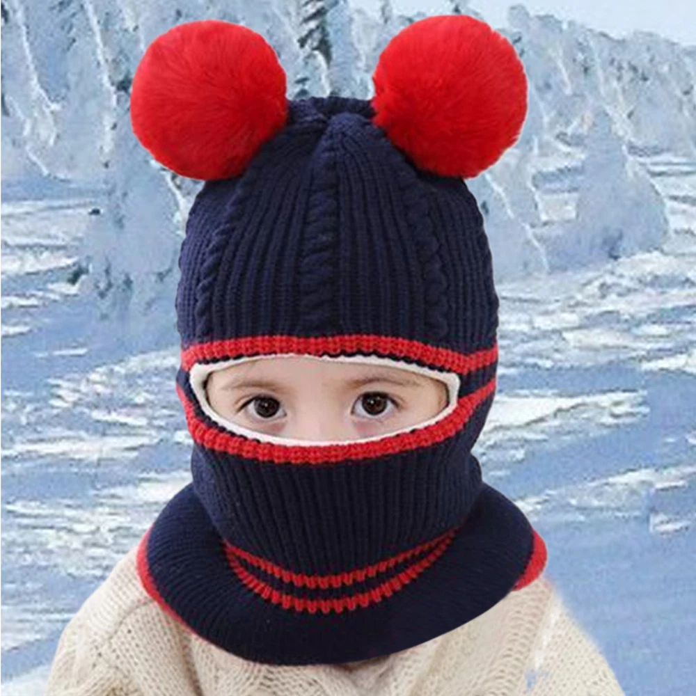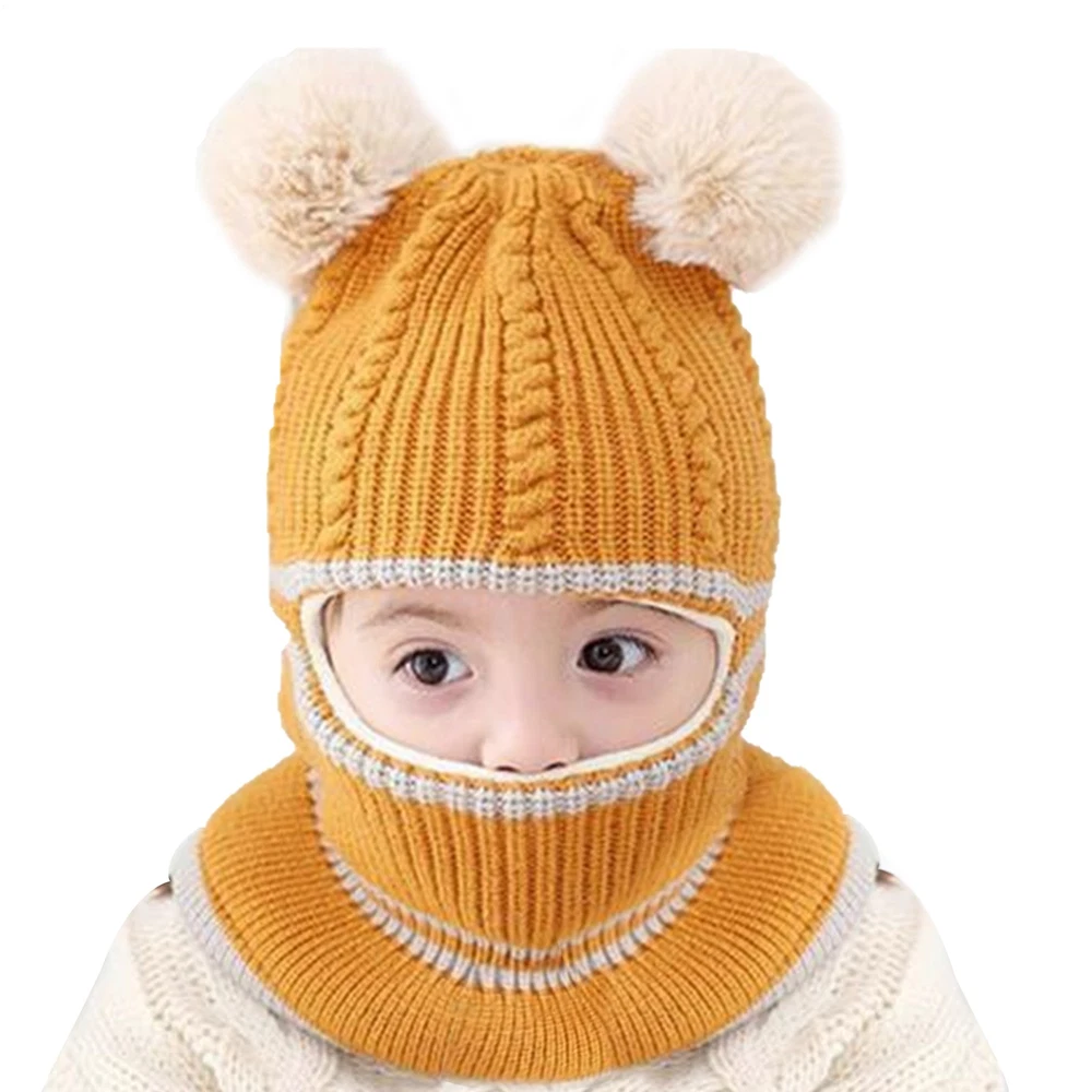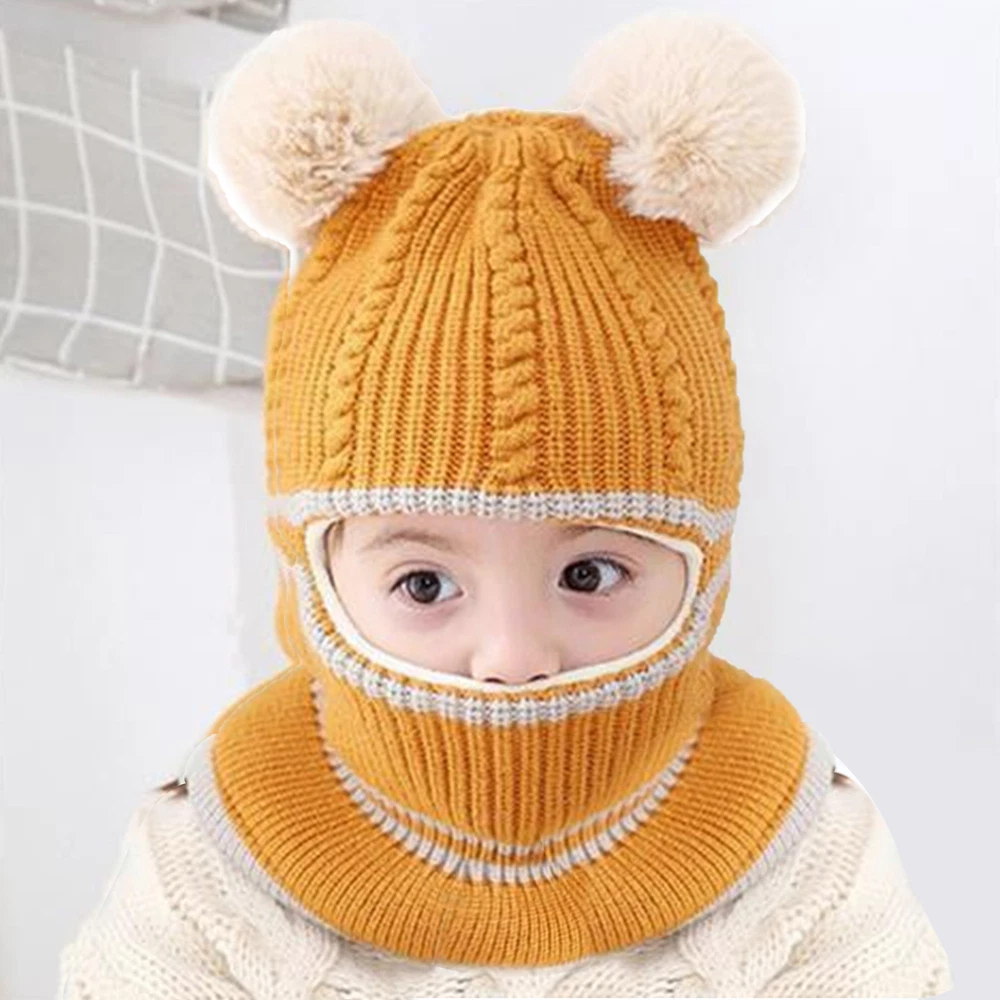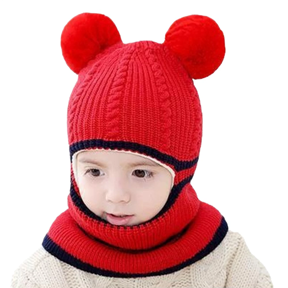 Toddler Baby Winter Warm Hat Hooded Scarf Earflap Knitted Cap Kids Girls Boys