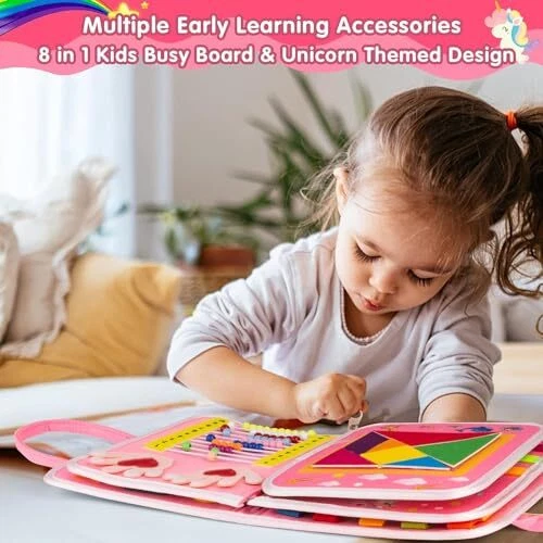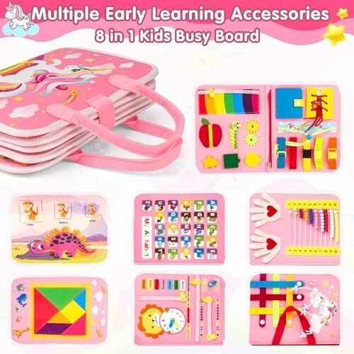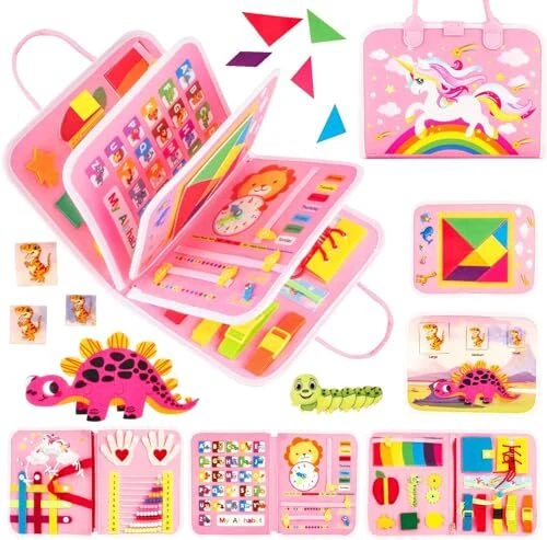 Toddler Busy Board Montessori Toys for 1 2 3 4 Year Old Baby, Sensory Board with Buckles Educational Activities for Learning Fine Motor Skills, Gifts for Girls Boys, Travel Book for Airplane Car, Pink [8 PAGES, ENDLESS FUN] - Our innovated busy board for toddlers has 8 pages to play, featuring multiple varieties of toddler activities, can keep your little one busy for hours. This toddler busy board is designed in varying difficulty levels to be challenging but not too much to keep your toddlers interested. Including buckles, zipper, shoelace, belt, button, clock, calendar, shapes matching, threading numbers, hook&loop letter, jigsaw animal puzzle and etc. [PLAY WHILE LEARNING] - Keep your baby entertained while they develop essential skills like dressing at their own pace, improving fine motor skills and finger dexterity. The Octopus button page help improve hand eye coordination. Clock, calendar and season weather page is for cognitive skill. Shape matching page and fun jigsaw puzzle improve recognition and imagination. Toddler can learn spelling and numbers through the hook&loop letters board and interesting number threading game. [SOFT & PORTABLE TODDLER TRAVEL TOYS]: Our sensory toys for toddlers 1-3 is made of toxic-free soft fabrics and felt with no hard corners, safe for your little toddlers to play. Busy board with handle, portable for toddlers to carry and flexible to fit in most diaper or school bags. Perfect toddler activities sensory board to keep them occupied while on car, airplane, travel or settings needing quiet. [EASY TO OPERATE] - Design for little hand to use, this Montessori toy buckle toys is well constructed and the buckles are in perfect size for toddlers to hold. You can also work on educational board together with your kids and teach them spelling, counting and matching. Great toddler activities for preschool learning. Also a good alternative to screen time. [PERFECT GIFT & SATISFACTION GUARANTEE]: BEAYEAU Montessori busy board for toddlers gifts is made with quality and care. Each parts are securely attached to the board and durable enough to hold up to toddler’ s use. The covers are printed with cute dinosaur pattern and animal alphabet, makes it a decent Christmas and birthday gift for 1 2 3 4 year old boys and girls. If you have any problems, our friendly service is here to help. [8 PAGES, ENDLESS FUN] - Our innovated busy board for toddlers has 8 pages to play, featuring multiple varieties of toddler activities, can keep your little one busy for hours. This toddler busy board is designed in varying difficulty levels to be challenging but not too much to keep your toddlers interested. Including buckles, zipper, shoelace, belt, button, clock, calendar, shapes matching, threading numbers, hook&loop letter, jigsaw animal puzzle and etc. [PLAY WHILE LEARNING] - Keep your baby entertained while they develop essential skills like dressing at their own pace, improving fine motor skills and finger dexterity. The Octopus button page help improve hand eye coordination. Clock, calendar and season weather page is for cognitive skill. Shape matching page and fun jigsaw puzzle improve recognition and imagination. Toddler can learn spelling and numbers through the hook&loop letters board and interesting number threading game. [SOFT & PORTABLE TODDLER TRAVEL TOYS]: Our sensory toys for toddlers 1-3 is made of toxic-free soft fabrics and felt with no hard corners, safe for your little toddlers to play. Busy board with handle, portable for toddlers to carry and flexible to fit in most diaper or school bags. Perfect toddler activities sensory board to keep them occupied while on car, airplane, travel or settings needing quiet. [EASY TO OPERATE] - Design for little hand to use, this Montessori toy buckle toys is well constructed and the buckles are in perfect size for toddlers to hold. You can also work on educational board together with your kids and teach them spelling, counting and matching. Great toddler activities for preschool learning. Also a good alternative to screen time. [PERFECT GIFT & SATISFACTION GUARANTEE]: BEAYEAU Montessori busy board for toddlers gifts is made with quality and care. Each parts are securely attached to the board and durable enough to hold up to toddler’ s use. The covers are printed with cute dinosaur pattern and animal alphabet, makes it a decent Christmas and birthday gift for 1 2 3 4 year old boys and girls. If you have any problems, our friendly service is here to help. Shipping from the USA All of our products are shipped from the USA, ensuring quick delivery to your destination. Payment We offer the following payment methods: PayPal, credit card, bank transfer, and eBay's secure payment system. Free Shipping & Free Returns Shipping within the USA is FREE. Additionally, any return is absolutely free for you. Risk-Free Purchase You have the option to return an item within 30 days without any justification. We cover the return shipping costs! Fast Shipping We ship immediately upon receipt of payment. Generally, the package is delivered within 2-3 days in the USA. If it takes longer, we will contact you. Quality and Costs Made in Europe, USA, China No customs fees or additional charges Total satisfaction guarantee Invoice with declared VAT available upon request in .pdf format Feedback Your feedback is very important to us. After you pay for your purchase, you will automatically receive positive feedback from us.