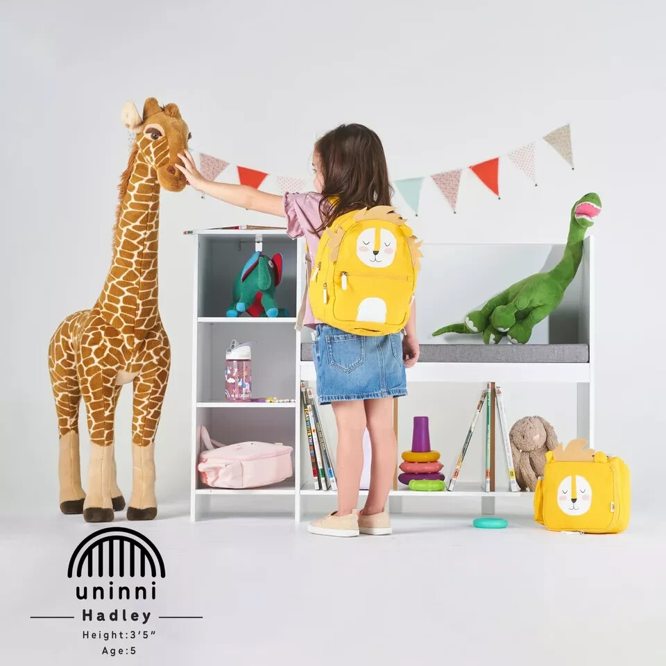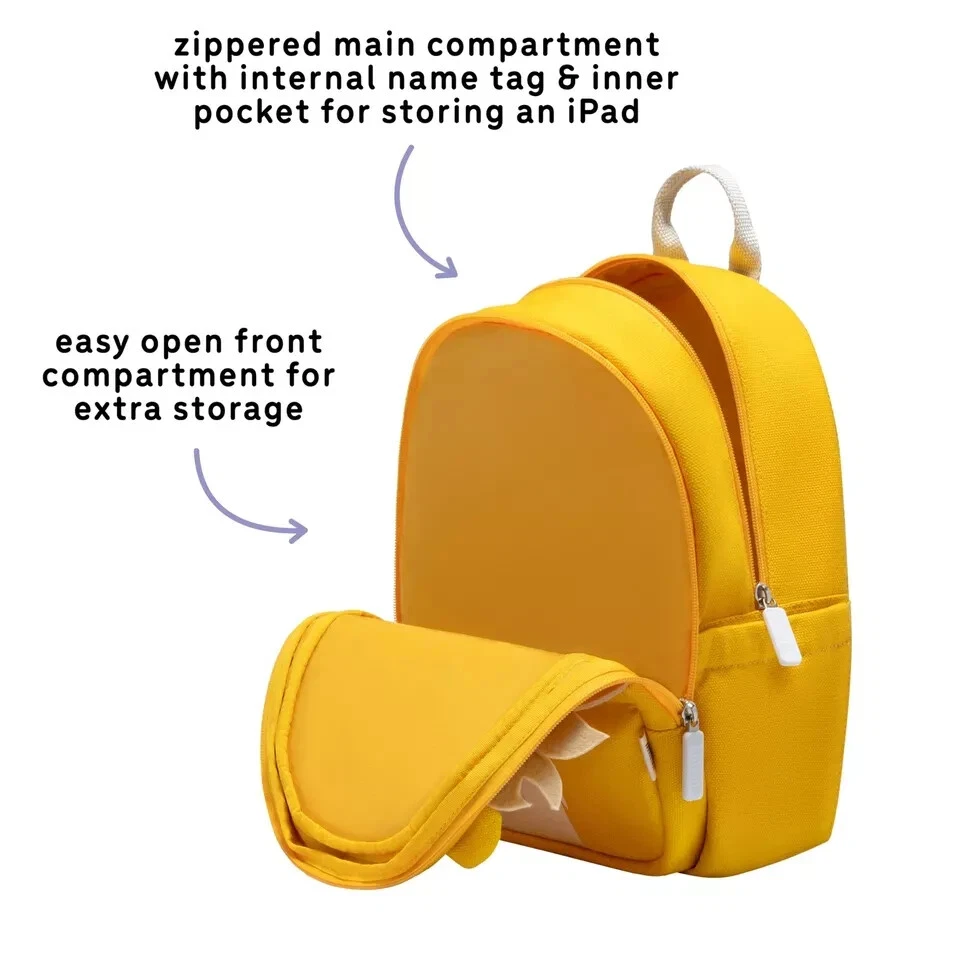 High-Quality Materials Design: Unique animal designs encase a strong 100% Coated CottonLining: 100% polyester with durable zippers to last through all your child’s adventures. Dimensions: 11.6” tall, 9.1” wide, 4.3” deep Thoughtful Design: Easily adjustable straps and zippers made for small fingers make carrying items effortless for your little one. Water Bottle Pocket: The backpack features an elastic side pocket for water bottles so that you can fit more items in the main compartment. Anti-Lost Leash Attachment: A zippered bottom compartment has a built-in attachment loop for the included detachable anti-lost leash. Inner Pocket: An inner pocket inside the main compartment is perfect for keeping electronic tablets safe from other items