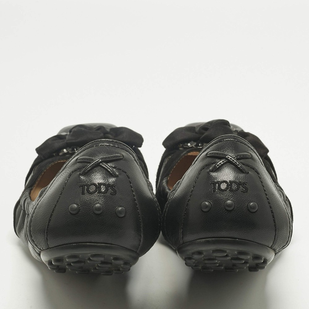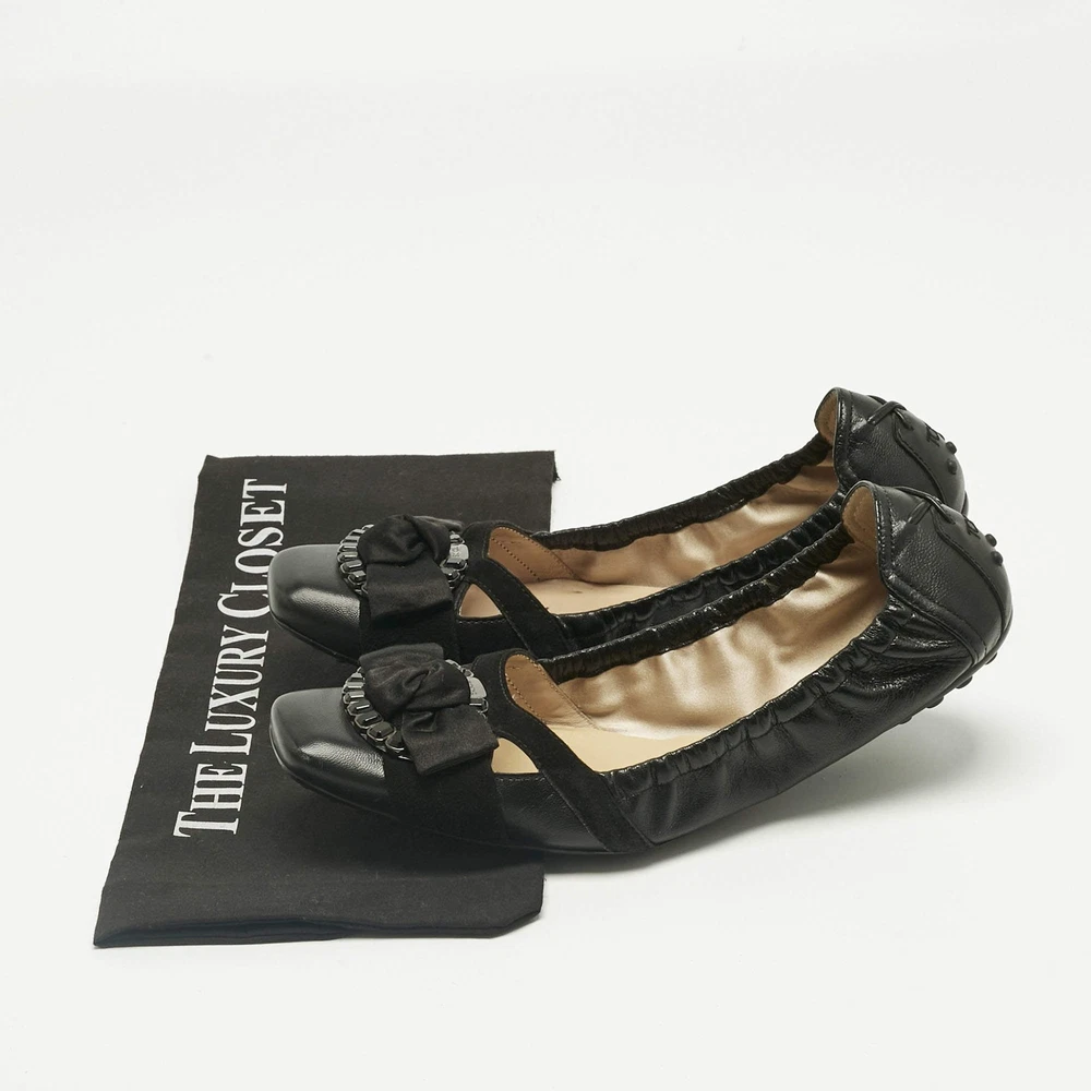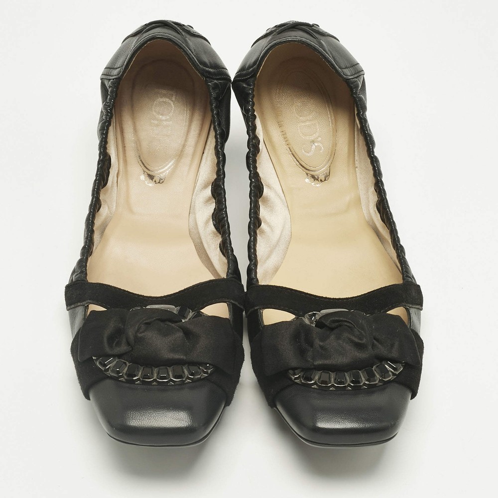 Our eBay Store About Us Contact Us Add to Favorite Sellers Tods Black Leather Bow Square Toe Scrunch Ballet Flats Size 40.5 Tod’s ballet flats come in supple black leather with a front bow and elasticized edges for a flexible fit. Effortless and durable, they’re perfect for days on the go. Product Details Brand Tod's Color Black Includes The Luxury Closet Packaging Outsole Length 27.5 cm Outsole Width 8.5 cm Size 40.5 Certified by The Luxury Closet This item has gone through a detailed authentication process overseen by our experts. We offer a lifetime guarantee of authenticity on all our items. How We Check The in-house team of experts at The Luxury Closet is highly trained to verify the authenticity and the condition of the luxury products. They ensure that only 100% authentic items are put on sale.The evaluation process is unique with its own mix of assessment criteria and differs according to the category. Each item is evaluated based on the following combination of hallmarks, hardware, stitching, symmetry, material, craftsmanship, stamping, codes, hologram stickers, and packaging. Our authenticators also check if the items have been modified or amended (e.g., aftermarket diamonds, replaced batteries, repaired bags, etc.) International Buyers Import duties, taxes and charges are not included in the item price. These charges are the buyers responsibility. Please check with your country’s customs office to determine what these additional cost will be prior to buying.