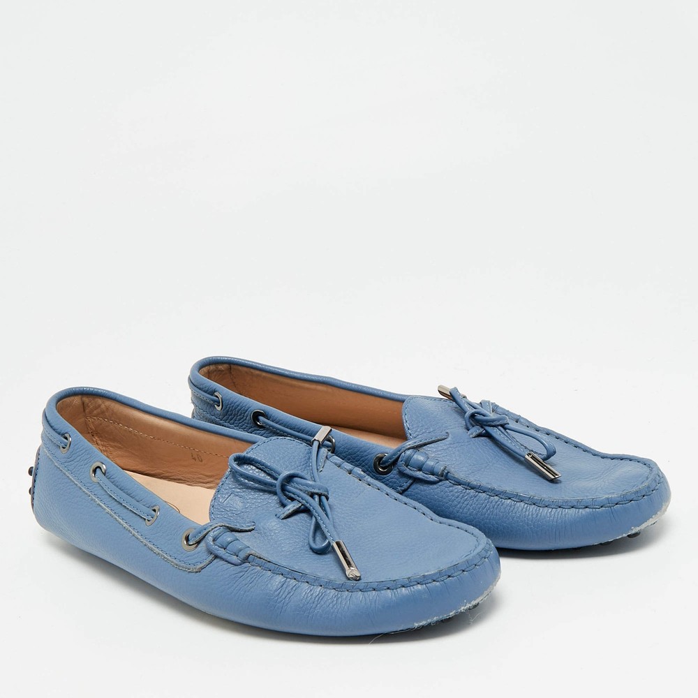 Our eBay Store About Us Contact Us Add to Favorite Sellers Tods Gommino Size 40 Blue Leather Driver Loafers It’s a day where you want comfort without compromising on polish. These blue leather driver Tod's Gommino loafers slip on easily, with a flexible upper that adapts to your movement. The signature rubber pebble sole extends to the heel and the vamps feature a tie-detailing. Product Details Brand Tod's Color Blue Includes The Luxury Closet Packaging Outsole Length 27 cm Outsole Width 8.5 cm Size 40 Certified by The Luxury Closet This item has gone through a detailed authentication process overseen by our experts. We offer a lifetime guarantee of authenticity on all our items. How We Check The in-house team of experts at The Luxury Closet is highly trained to verify the authenticity and the condition of the luxury products. They ensure that only 100% authentic items are put on sale.The evaluation process is unique with its own mix of assessment criteria and differs according to the category. Each item is evaluated based on the following combination of hallmarks, hardware, stitching, symmetry, material, craftsmanship, stamping, codes, hologram stickers, and packaging. Our authenticators also check if the items have been modified or amended (e.g., aftermarket diamonds, replaced batteries, repaired bags, etc.) International Buyers Import duties, taxes and charges are not included in the item price. These charges are the buyers responsibility. Please check with your country’s customs office to determine what these additional cost will be prior to buying.