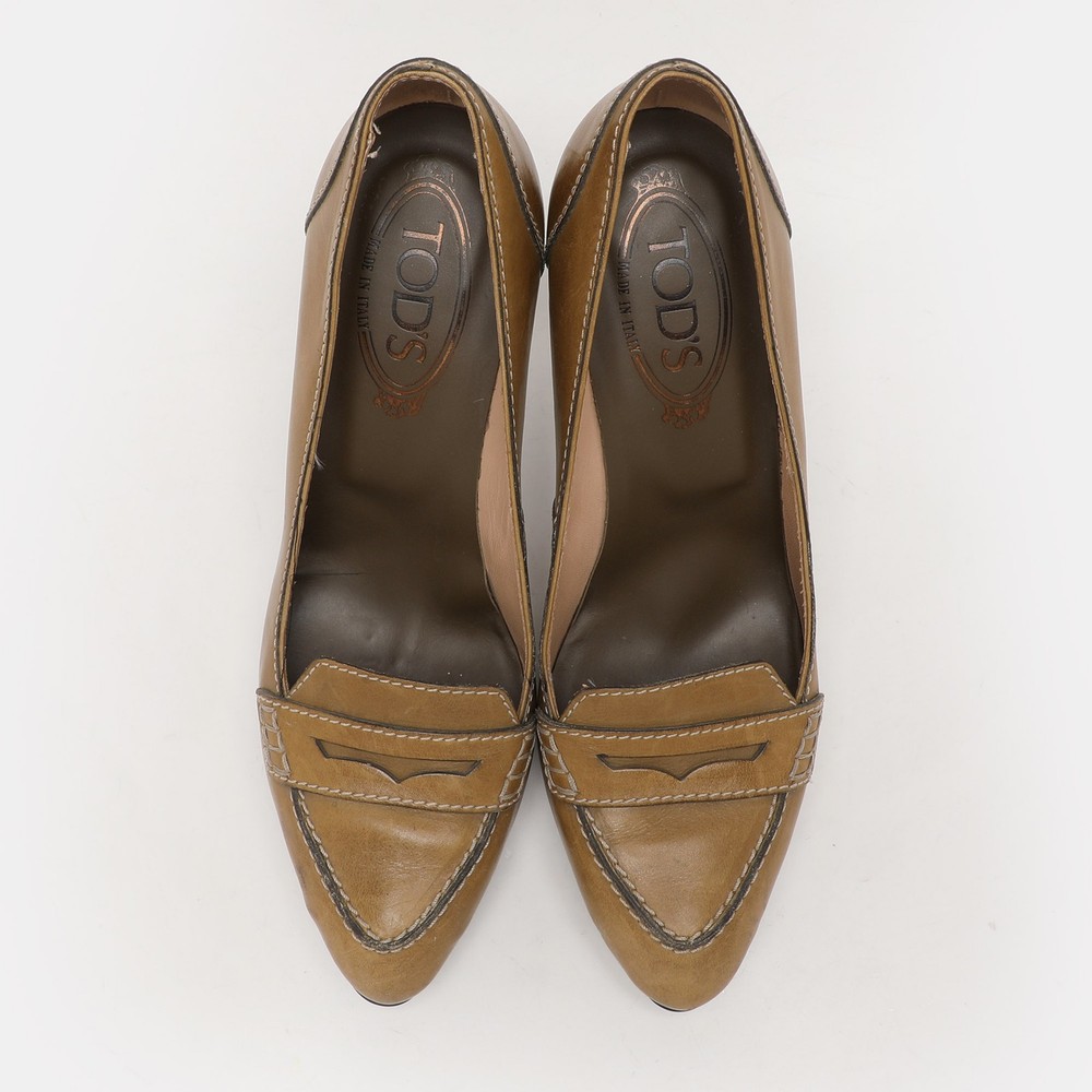 Curvaceous arches, a feminine appeal, and a well built structure define this set of designer pumps. Coming with comfortable insoles and sleek heels, style them with your favorite outfits.Certified by The Luxury Closet - This item has gone through a detailed authentication process overseen by our experts. We offer a lifetime guarantee of authenticity on all our items. Import duties, taxes and charges are not included in the item price. These charges are the buyers responsibility. Please check with your country’s customs office to determine what these additional cost will be prior to buying. Our eBay Store About Us Contact Us Add to Favorite Sellers Tod's Green Leather Pumps Size 38.5 $151.8 Curvaceous arches, a feminine appeal, and a well built structure define this set of designer pumps. Coming with comfortable insoles and sleek heels, style them with your favorite outfits. Product Details Brand Color Green Dimensions Material Leather Size 38.5 Outsole Width 8 cm Outsole Length 22.5 cm Heel Height 10 cm Includes The Luxury Closet Packaging Certified by The Luxury Closet This item has gone through a detailed authentication process overseen by our experts. We offer a lifetime guarantee of authenticity on all our items. How We Check The in-house team of experts at The Luxury Closet is highly trained to verify the authenticity and the condition of the luxury products. They ensure that only 100% authentic items are put on sale.The evaluation process is unique with its own mix of assessment criteria and differs according to the category. Each item is evaluated based on the following combination of hallmarks, hardware, stitching, symmetry, material, craftsmanship, stamping, codes, hologram stickers, and packaging. Our authenticators also check if the items have been modified or amended (e.g., aftermarket diamonds, replaced batteries, repaired bags, etc.) International Buyers Import duties, taxes and charges are not included in the item price. These charges are the buyers responsibility. Please check with your country’s customs office to determine what these additional cost will be prior to buying.