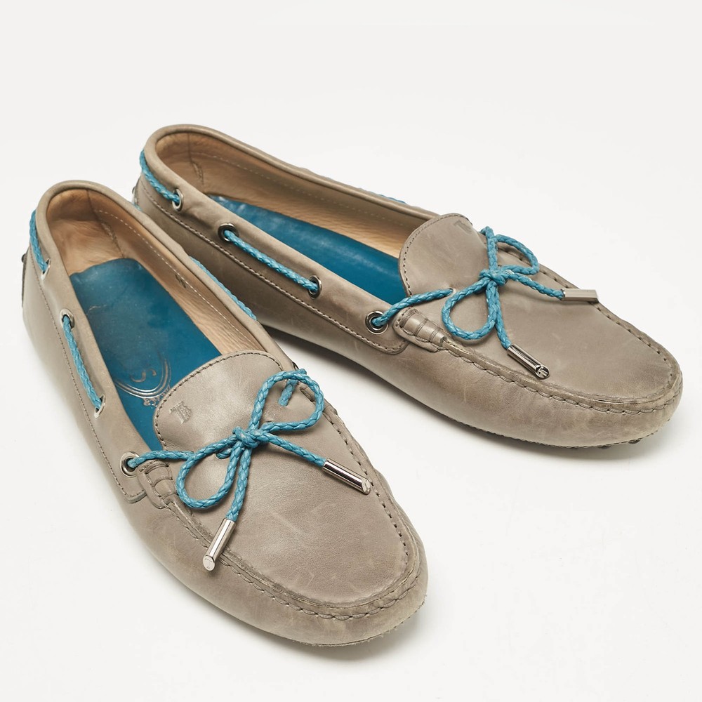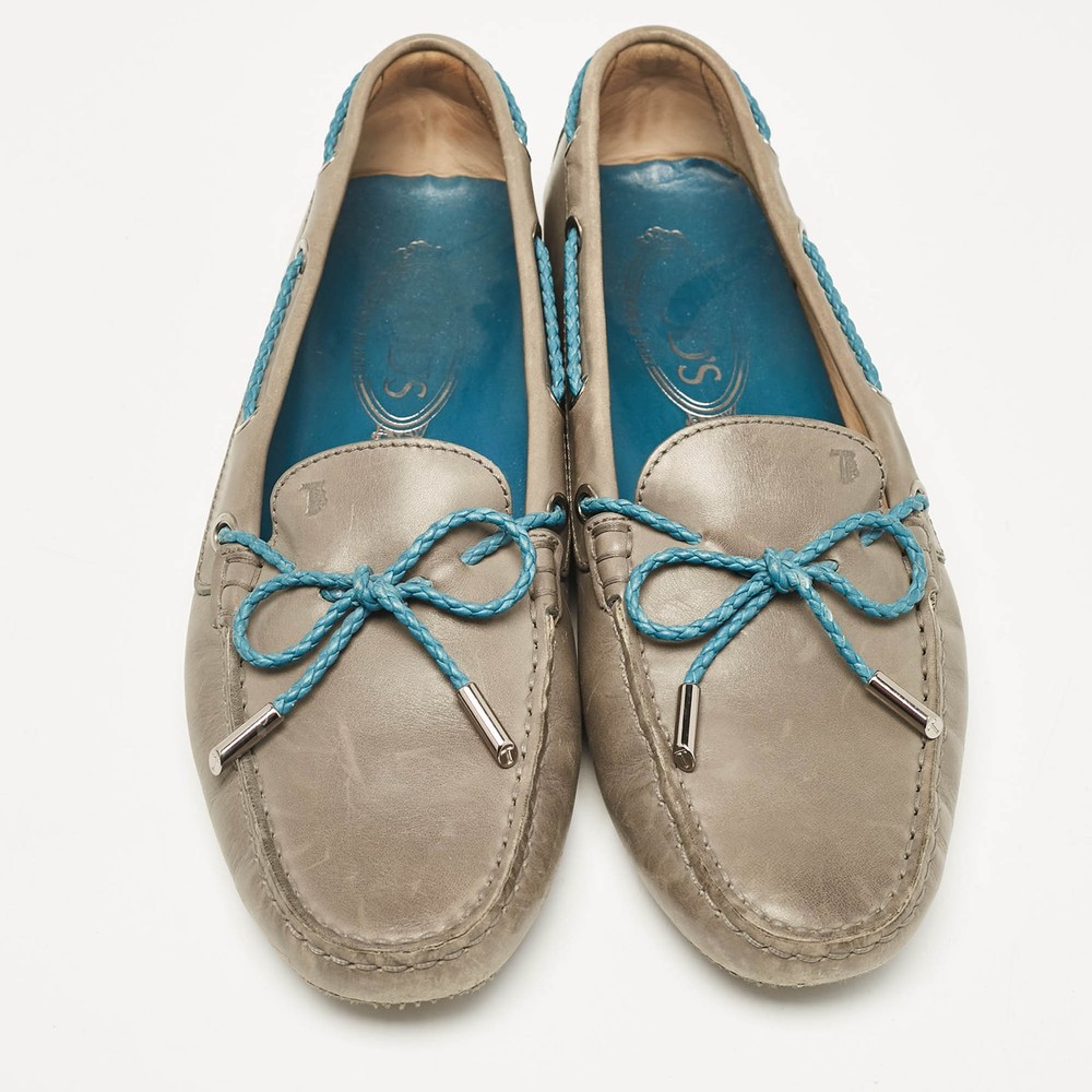 Our eBay Store About Us Contact Us Add to Favorite Sellers Tods GreyBlue Leather Braided Bow Slip On Loafers Size 40 To perfectly complement your attires, we bring you this pair of loafers that speak nothing but style. The shoes have been crafted with skill and are designed to be easy to slip on. They are just the right choice to complement your fashionable side. Product Details Brand Tod's Color Grey Includes The Luxury Closet Packaging Outsole Length 27 cm Outsole Width 8 cm Size 40 Certified by The Luxury Closet This item has gone through a detailed authentication process overseen by our experts. We offer a lifetime guarantee of authenticity on all our items. How We Check The in-house team of experts at The Luxury Closet is highly trained to verify the authenticity and the condition of the luxury products. They ensure that only 100% authentic items are put on sale.The evaluation process is unique with its own mix of assessment criteria and differs according to the category. Each item is evaluated based on the following combination of hallmarks, hardware, stitching, symmetry, material, craftsmanship, stamping, codes, hologram stickers, and packaging. Our authenticators also check if the items have been modified or amended (e.g., aftermarket diamonds, replaced batteries, repaired bags, etc.) International Buyers Import duties, taxes and charges are not included in the item price. These charges are the buyers responsibility. Please check with your country’s customs office to determine what these additional cost will be prior to buying.