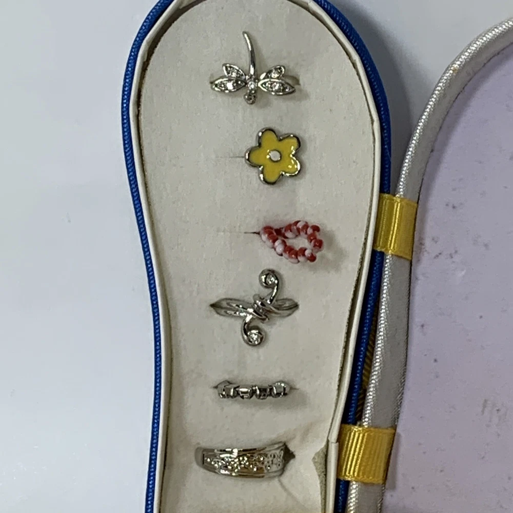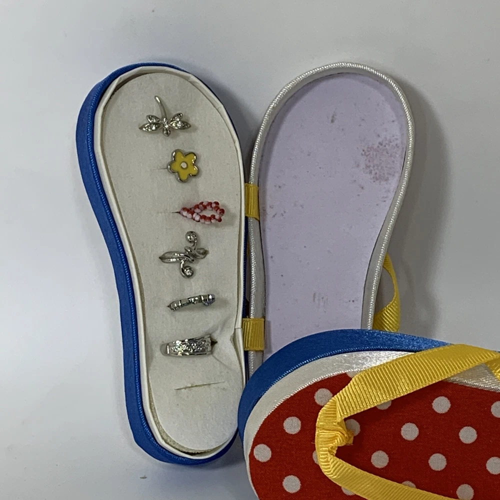 Toe Ring Gift Set 6 Peti Party Flip Flip Box Avon NIB 1 Missing •••**. 1 ring missing Outer Box not in great condition due to storage, rings are new and un worn Items from estate collection of fine and costume jewelry, will be listing more as time permits! Happy to combine shipping, wait on invoice before purchase -100% return on all items: for any reason! -Free returns : all items purchased, if arrived not as described : broken : error in listing -color and description: I do my personal best to describe for you, and is my opinion -size : all items with show size in pictures , to the exact possible measurements that I can, vintage size may be different than todays, so please take your favorites and measure them and compare:) - please ask away! Any questions or concerns are encouraged before purchase! I will be happy to reply quickly! -ALL items will arrive clean. Item clothing will be washed in persil and lined dried, items with tags will NOT be washed. Some vintage items may not be as well to save the integrity, but if not washed will be noted in listing! - all flaws will be noted in listing and photographed well! if I miss something let me know. *** all items are stored in a pug loving home, not his room but his house :) If you made it this far reading , I thank you! I appreciate you! I hope to do business with you. Happy shopping Melissa - [ ]