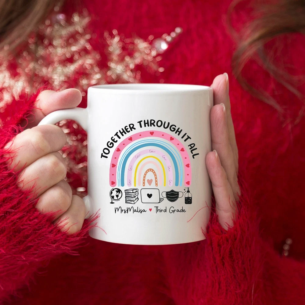 Together Through It All Mug Teacher Appreciation Gift Distance Learning Teacher Product Details.. This high quality 11oz. ceramic white mug has a premium hard coat that provides crisp and vibrant color reproduction sure to last for years. Perfect for all hot & cold beverages. The highest quality printing possible is used. It will never fade no matter how many times you wash it. Material: 100% Ceramic. Print both sides. Dishwasher and Microwave Safe. High Gloss + Premium White Finish. Printed in the U.S.A. Personalized & Custom. We support personalized and custom mug to add custom, when placing an order, you can add notes to the "order note" in shipping address section. Also you can contact us directly via message. Shipping Info. Ready to ship in 1 to 2 business days, All products are made-to-order and proudly printed in the United States. Shipped by USPS and DHL, You will receive your order in 5-7 days. Replace & Refund. All products are defective during shipping broken, chipped will be replaced free of charge. You are not satisfied with the product, we will refund 100% money to you. If any other issues arise, please do not hesitate to message, we would be more than happy to assist you.