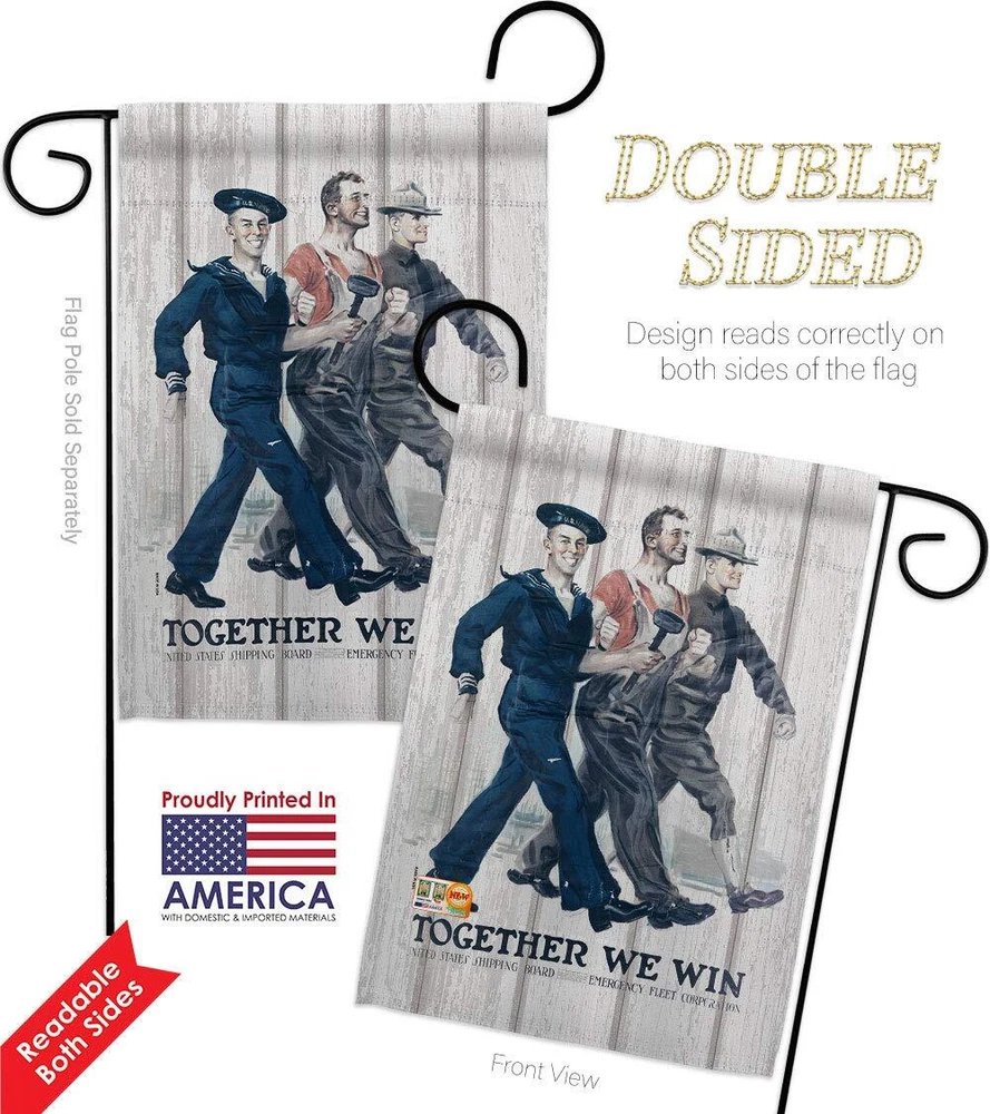Together We Win Garden Flag Pack Armed Forces Navy USN Seabee United State Am...