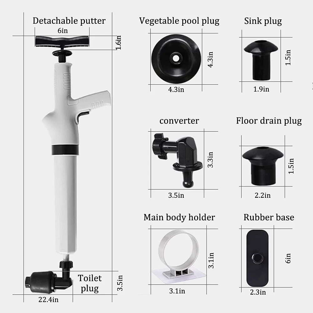Toilet Clean High Pressure Air Drain Blaster Pump Plunger Sink Clog Remover US Features: 1. The handy push rod is inserted into the air cylinder for pushing, and the air can be pressed by both hands so as to fill the air pressure. 2. Strong high-voltage design, no need to electrically dredge the pipeline. Wall hanging receives, hangs up after use, clean and convenient for next use. 3. The instantaneous jet of high-speed airflow drives the water in the pipeline to exert high pressure and wash away the blockage. 4. Visual instrument design can increase air pressure according to dredging needs, which is simple and convenient. One-in-one inflatable cylinder, farewell to the annoying connected inflatable cylinder, easy to use, first expansion, then dredging, sealing the pipe mouth to prevent waste water backflow splash. 5. Removable push rod, one-handed inflatable often laborious, after reaching a certain pressure will not be able to push, connected with the push rod, easily charged to 6BAR pressure. 6. Use double-handled design, aiming at pipelines such as floor drain, more stable grip. Special plug designed for toilet, elbow design, close to the glaze without damaging. Insert pipeline, one key dredge convenient and practical. Specifications: Material: ABS Total Length: 58cm/22.83" Color: Gray Usage method: 1. Remove dredger 2. Insert inflatable base 3. Insert inflatable handle 4. Start inflating 5. Install toilet plug 6. Pull the trigger one button to clear it Package Includes: 1 set of Toilet Dredger with Dredging Accessories Notes: 1. Due to the different monitor and light effect, the actual color of the item might be slightly different from the color showed on the pictures. Thank you! 2. Please allow 1-3mm measuring deviation due to manual measurement. We only accept the payment by Paypal. Buyers are required to carefully follow payment instructions on the checkout page, and note down any necessary details on it (e.g. bank account details). If buyers fail to follow the instructions on the checkout page, We are not liable for any unidentified payments and subsequent delivery delays. Our warehouse is located in US . All orders will be shipped from our US warehouse. Items are generally dispatched within 1 working day after payment is cleared. Buyers will also be able to trace deliveries online with a unique tracking number. While we endeavour to send all our items with tracking numbers. If there are anything wrong with the tracking number, please contact seller at any time. Buyers have full responsibility to provide us with the correct delivery address on the checkout page before payment is made. Re-delivery fee may be charged to buyers for items that are undeliverable and/or returned to us due to incorrect delivery address or unsuccessful deliveries. Items will only be delivered during normal working hours (9am to 5pm on weekdays. Delivery is not available on weekends, public holidays or after business hours. Returns must be agreed by both parties prior to the actual return with 30 business days. Buyers must also strictly follow our returns procedure when returning an item. We reserves the rights to provide buyers a replacement, parts or a full or partial refund. Charges may apply if the product is damaged by buyers when the returned item is received. Should you change your mind and wish to return your item, this can be done if you notify us within 30 days of receiving your item. Return postage should be covered by buyer in this case. If it is buyer's personal reason to return the item, such as does fit, the return postage would be at buyer's charge. We maintain high standards of excellence service and strive for 100% customer satisfaction! Feedback is very important to us. You are guaranteed to have your order fully delivered or your money back. Kindly contact us freely if there is any issue with our products.