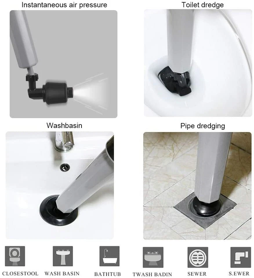 Toilet Clean High Pressure Air Drain Blaster Pump Plunger Sink Clog Remover US