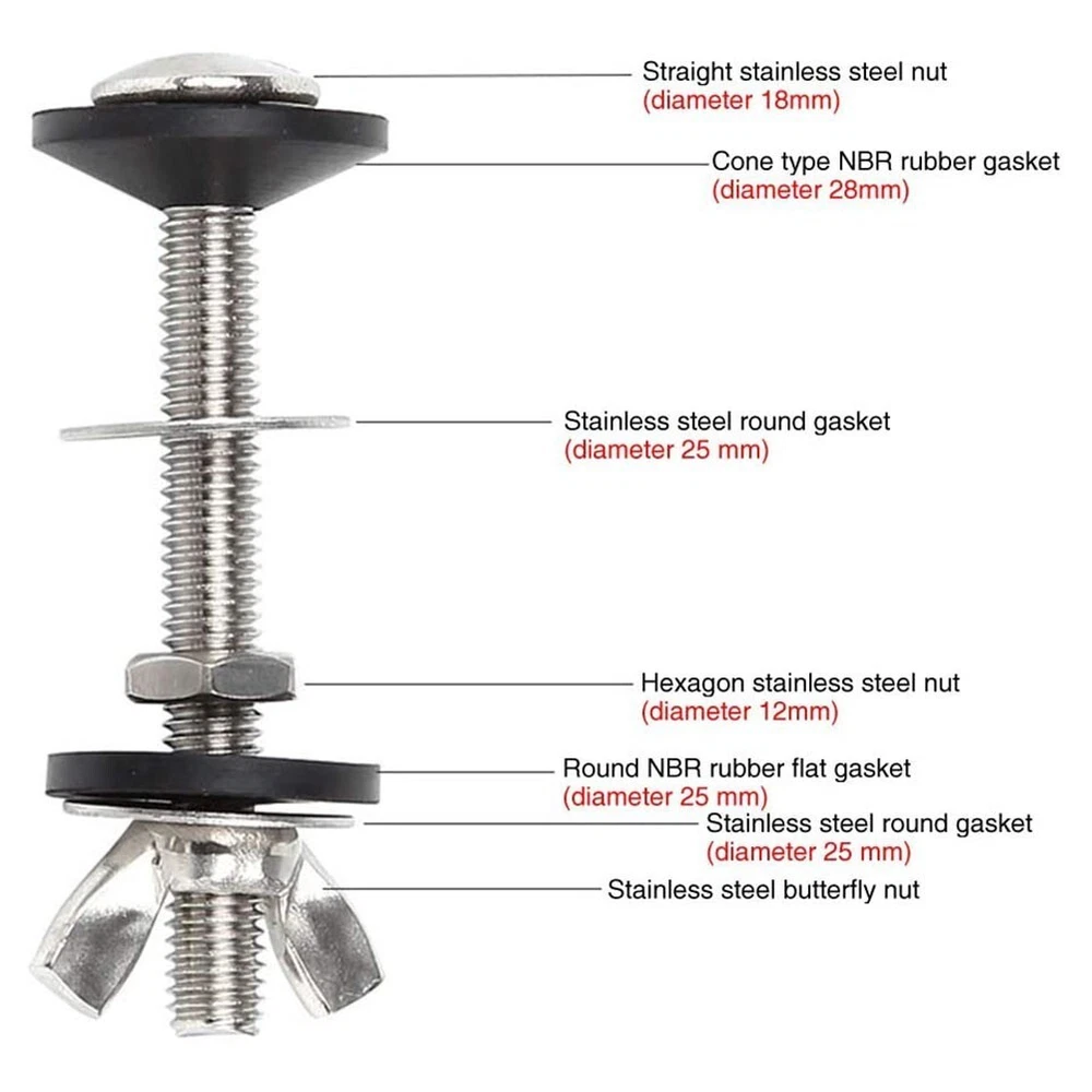 Product Description Features: * brand new and high quality *Made of high quality material, and practical to use *Uses: a stainless steel bolt through kit, for connecting the toilet cistern to pan. *Package included: includes two bolts, conical washers, washers and s. *Material: made of 304 stainless steel and NBR rubber, to use. *Unassembled kit: easy to assemble, easy to use. Specification: Name: water tank bolt Material: 304 stainless steel, NBR rubber Color: silver Size(approx): 74*8mm/2.91*0.31inch Package Contents: 2 pcs x water tank bolt(unassembled) Note: 1. The real color of the item may be slightly different from the pictures shown on website caused by many factors such as brightness of your monitor and light brightness. 2. Please allow slight manual measurement deviation for the data. Payment Payment must be completed within 5 days. If you have any problems about payment, please contact us via ebay message. Delivery details We only ship to confirmed ebay Order addresses. Please comfirm that your Order address is in line with your shipping address. Please kindly note that the c ombined shipping is not provided because the shipping fee is calculated by weight. Also, the each additional item means exactly the the same color and size. It takes about 7 -15 working days to US; about 10-30 working days to other countries. Transit time may be a little delayed because of the bad weather and customs inspection . If you do not receive your item within 30 working days since payment finished, please contact us immediately for further assistance. Contact us We strive for 100% customer satisfaction! Positive Feedback is very important to us. If you have any questions, p lease feel free to contact us via "Ask seller a question" . We will reply your email within 24 working hours. On Oct 12, 2024 at 12:50:01 PDT, seller added the following information: