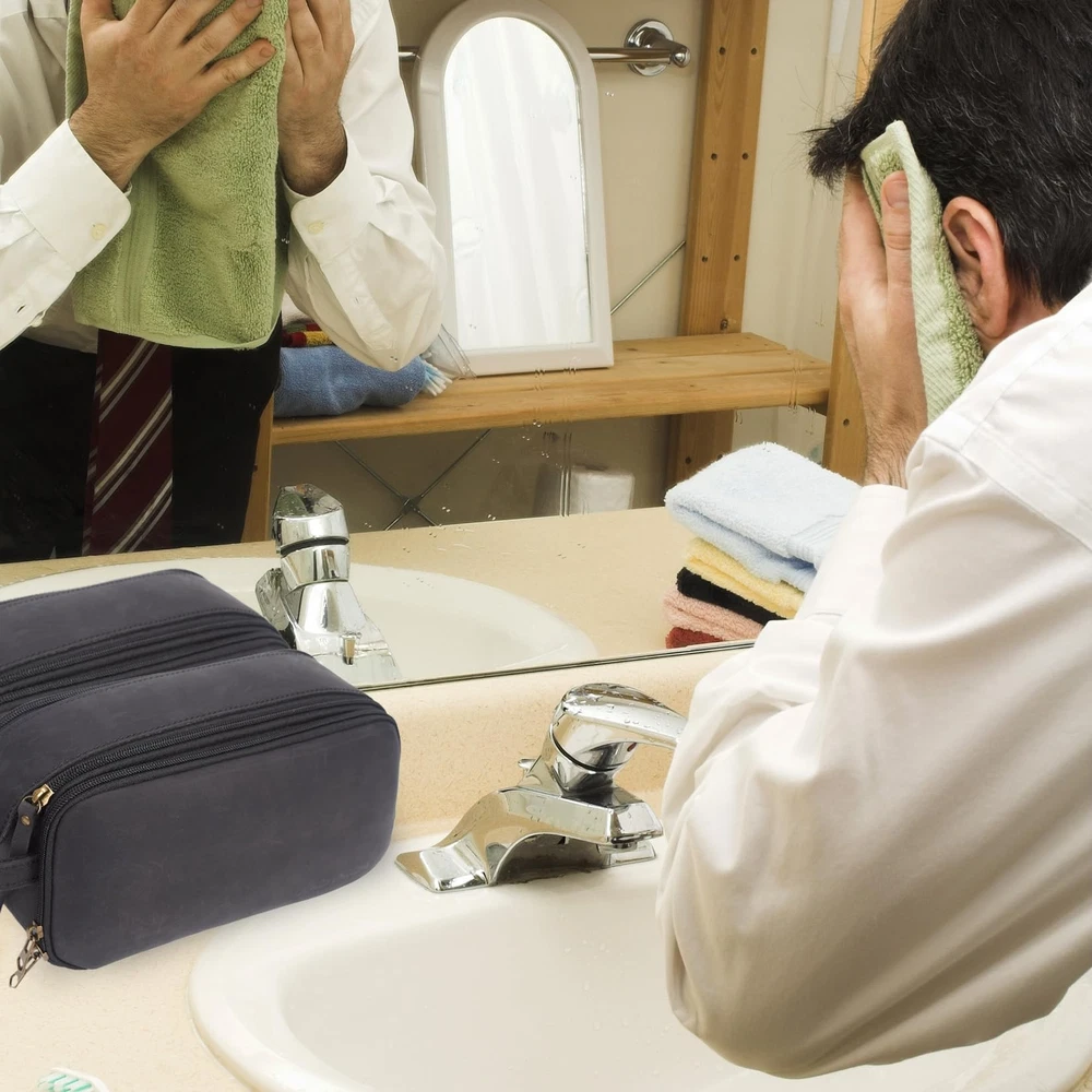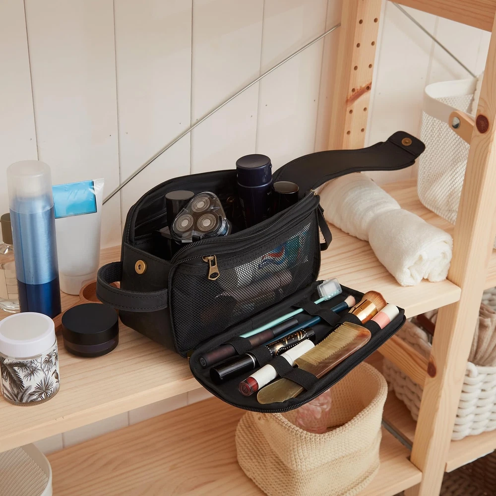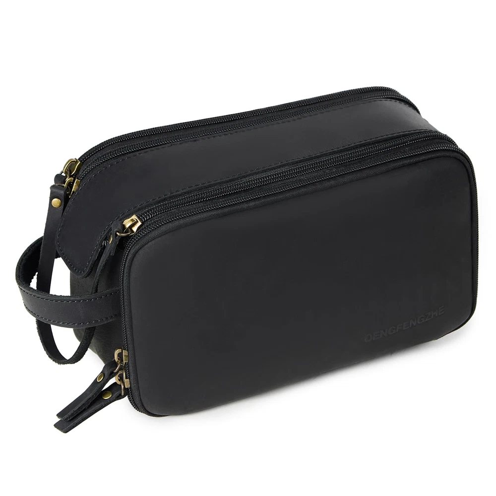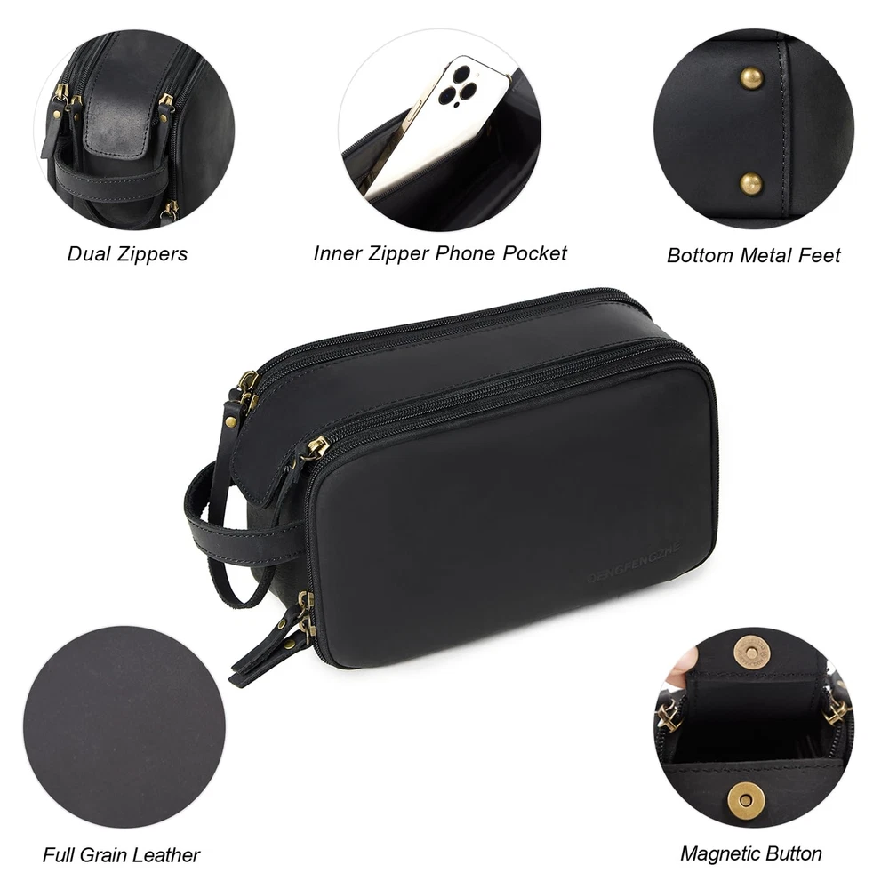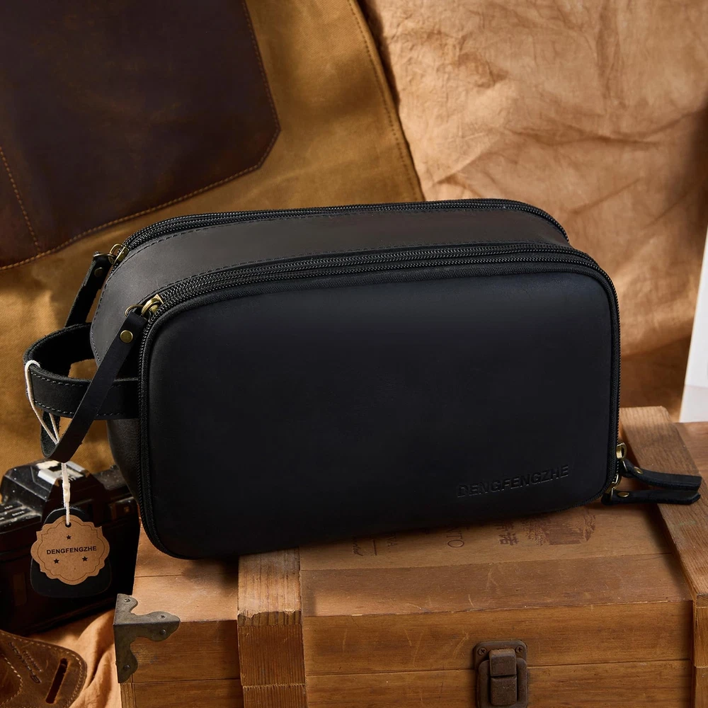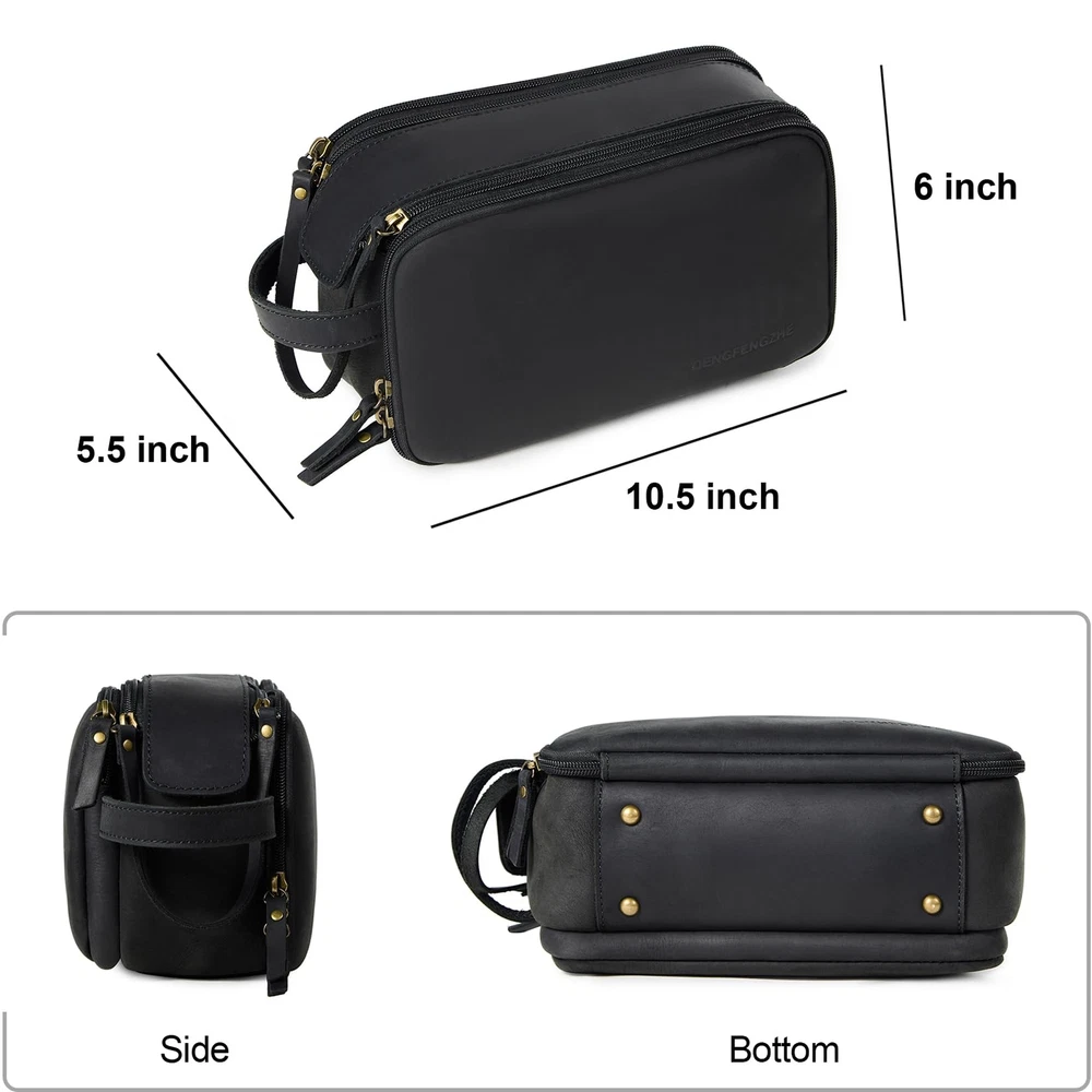 DENGFENGZHE Toiletry Bag for Men, Full Grain Leather Travel Pouch Shaving Dopp Kit Bathroom Toiletries Organizer Bags, Black LARGE CAPACITY: Travel toiletry bag measures 10.5(L) x 5.5(W) x 6(H) inches, it is large and roomy to store all essentials during travel or home use. The travel bag has multiple internal compartments, convenient for you to sort and access. Easily fits all the toiletries, shaving kits, hair wax, shower gel, shampoo, toothbrushes and showering bathroom tools, etc. Essential organizer bag for business and travel. PREMIUM MATERIAL: Our mens toiletry travel bag made of full grain leather, water-resistant and durable, to protect your toiletries during travel. The toiletry bag also offers wet/dry separation so you can keep wet accessories in a separate compartment from dry toiletries. High quality bathroom bag makes your trip more convenient and enjoyable. STYLISH RETRO DESIGN: This men's toiletry bag with retro color matching, appearing grand, fashionable, and high-end, perfect for carrying when going out. It has a side handle that can be easily hung in the bathroom or closet, packaging with dust bag, very convenient during your travel. PERFECT GIFT: This leather travel bags also cosmetic bag, it is an excellent travel accessory for men and women. The toiletry bag is easy to pack and fits well in luggage and backpacks, perfect for business trips, travel, gym, camping, and family outings. It is a great gift for men, women, father, uncle, husband, friends, and those who love to travel. 100% SATISFACTION: We make sure that every customer gets a great buying experience. If you find any issue with this travel toiletry bag, please let us know immediately, we will give you a satisfactory solution. SHIPPING Domestic Buyers - We have confidence in our products, but if you are not fully satisfied please contact us within 30 days of purchase and you will get full refund. - We ship within 3 business days of payment, usually sooner - We offer FREE shipping on all orders! - We only ship to the lower 48 states, no APO/FPO addresses or PO Boxes allowed International buyers – please note: Import duties, taxes, and charges aren't included in the item price or postage cost. These charges are the buyer's responsibility. - Please check with your country's customs office to determine what these additional costs will be prior to bidding or buying. * Order Cancellation Policy ** You can return a product for up to 30 days from the date you purchased it. 1. The seller reserves the right to cancel the special case only due to eBay cancellation fee. 2. The decision of seller is the final. 3. The seller will respond to the cancellation request within 2 business days. Please wait for the result of cancellation. 4. In case the cancellation is not completed by some reasons, the buyer can follow the options below to get the refund. 4.1 The buyer can reject the item when it arrives. 4.2 The buyer can send the item back to the seller within 30 days If the buyer receives item (USA Shipment ONLY). The seller will provide the FREE return label to the buyer when the buyer opens " Return Item" case on eBay by using the reason as "Change my mind" ONLY. 5. When buyer has placed the order. The order will be processed and completed by automatic warehouse system within 5 minutes. In case that buyer sends the cancellation request after 5 minutes of placing the order, the request will be rejected. **Sending direct message to cancel the order is not allowed for every case.* Return Policy For the return case - If buyer would like to return the items for refund or replacement, please CONTACT SELLER to receive the free return label from seller. The refund or replacement will be processed with the tracking number of return label which is provided by seller only. The other ways of return which are not approved by seller will not be processed for the refund or replacement.