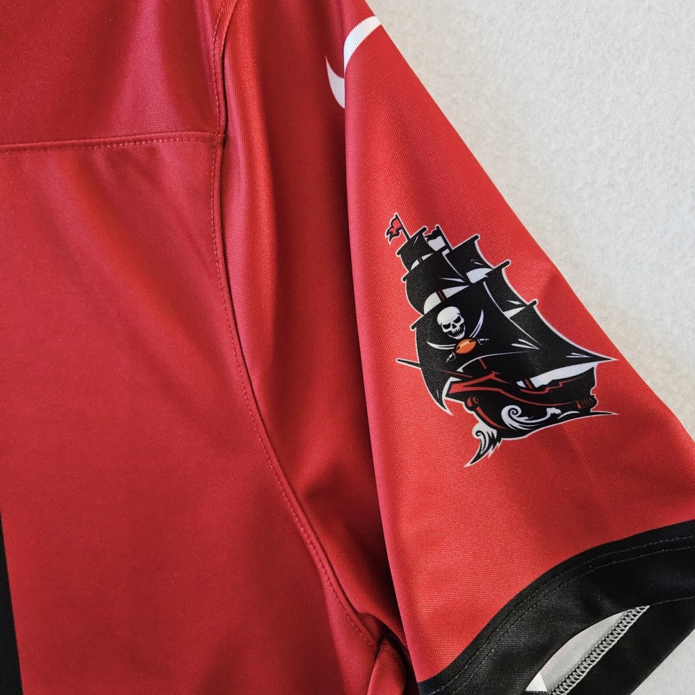 100% polyester short sleeve jersey onfield apparel nike dri fit buccaneers #12 tom brady. Short sleeve shirt is in excellent clean condition no holes or tears. Sz XL Measures flat 21" across shoulders 24" pit to pit 30" Length