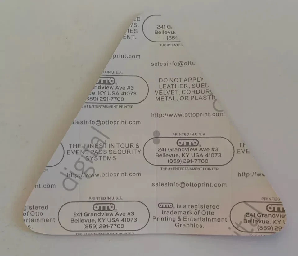 This listing is for a single backstage pass laminate as shown and described above...Both sides are shown..These came in a large collection of passes from the owner of Otto Passes, David Otto...Otto Passes have been a go to name for artist for more than 40 years.. Please see the attached photo(s) and e-mail me with any questions prior to bidding...If you hover over the image in the main frame the zoom feature kicks in so you can see extreme close up details..Stated shipping is inside the Continental USA...Payment is expected within 3-days.. .. PLEASE NOTE....WE SHIP ON TUESDAYS AND FRIDAYS!!!