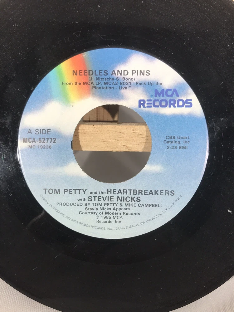 Modified Item:NoRelease Year:1985Record Grading:Very Good Plus (VG+)Country/Region of Manufacture:United StatesGenre:RockMaterial:VinylType:SingleUPC:Does not applyEdition:First PressingRecord Size:7"Language:EnglishFormat:Recordgtin13:Does not applySpeed:45 RPMDuration:SingleSleeve Grading:Good Plus (G+)Release Title:Needles and PinsStyle:Garage RockArtist:Tom Petty & Stevie NicksRecord Label:MCA