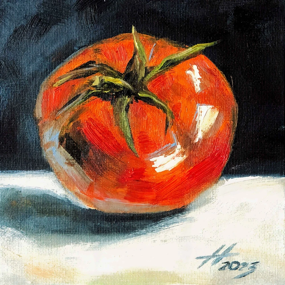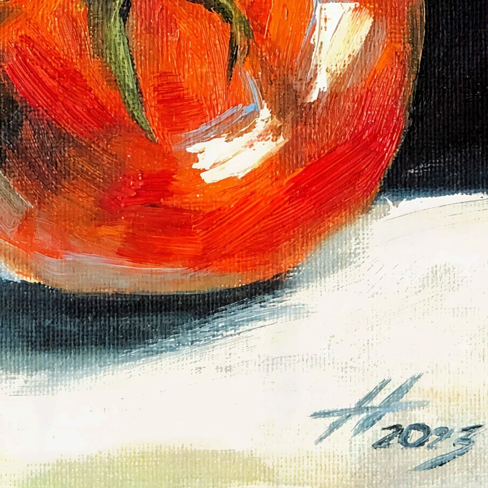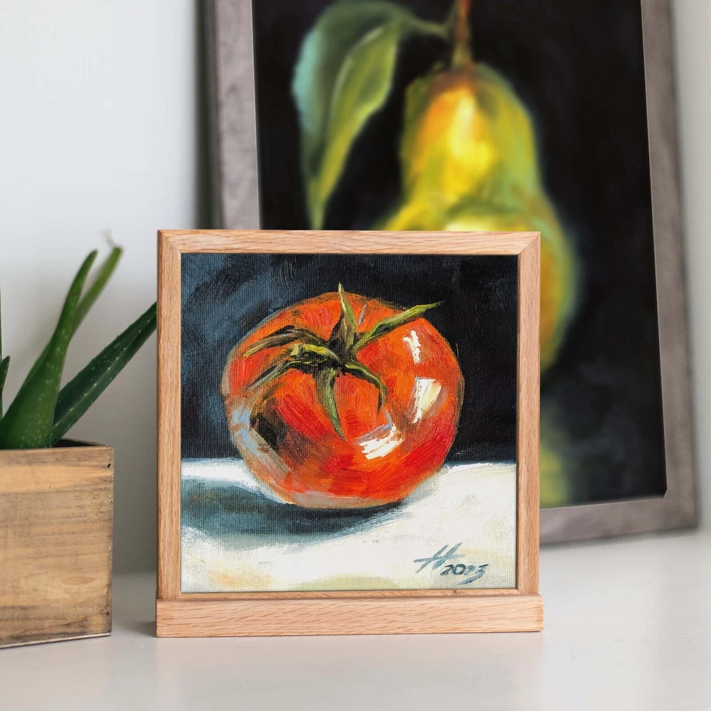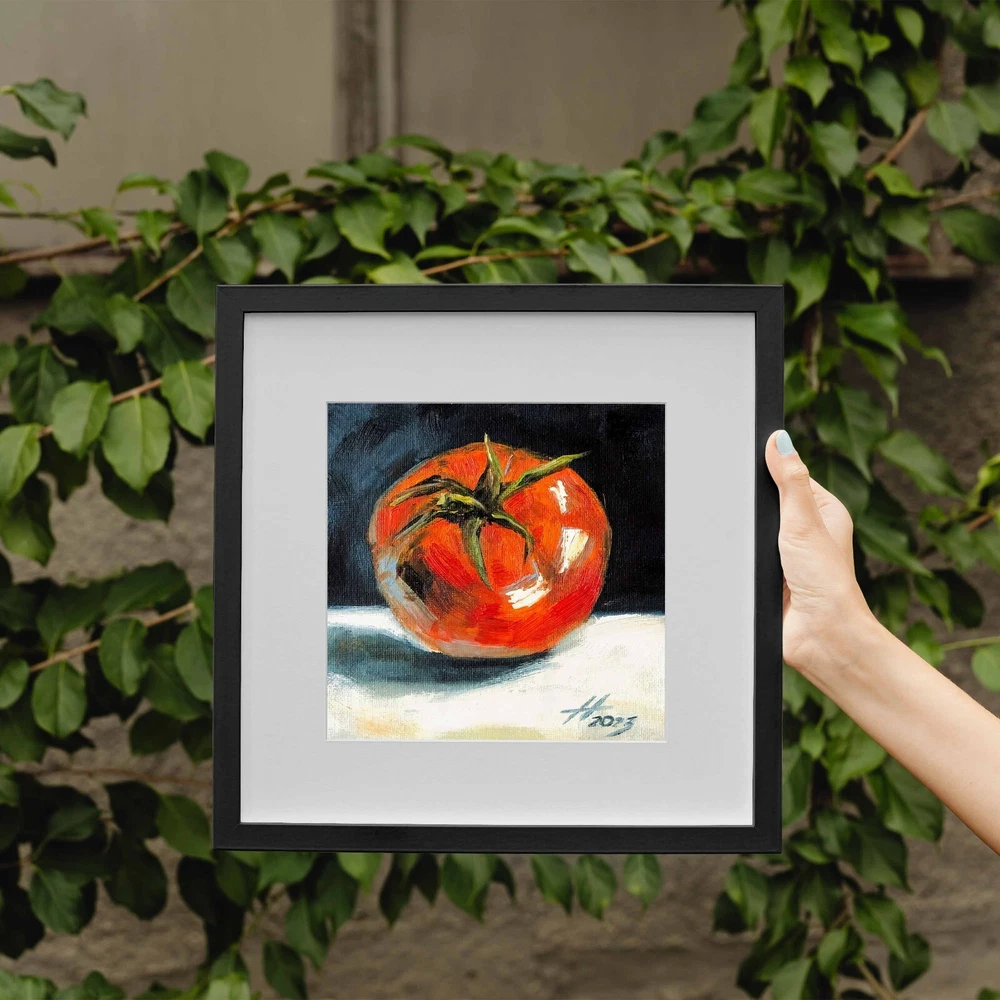 Oil painting «Tomato», size approximately 6.00 x 6.00 inch. See more in my store: This fruity still life features a ripe red tomato, made with oil paints on canvas stretched on cardboard. It's a small oil painting that captures the essence of vegetable still life. This tomato painting is perfect for adding a touch of kitchen folk art to your space. The tomato oil painting, with its Mexican style art vibe, makes a great piece of vegetable wall art or tomato wall art. The depiction of the tomato plant and tomatoes in this fruit artwork will add charm and warmth to your interior. Ideal for any still life painting collection. ♥ Click here to view all of my original art. - https://www.ebay.com/str/artnekrasovaolga —————————— ONE OF A KIND - READY TO SHIP Title: «Tomato» Medium: Сanvas Stretched On Cardboard , Oil Paints , Brushes, Palette Knife, Light Texture. Size: 5.90 W x 5.90 H inch (15.00 W x 15.00 H cm) 100% HAND PAINTED: Original painting from my art studio. A frame is required (supplied without frame) —————————— * will be carefully packaged and shipped with tracking number. —————————— Pay attention, actual colors may vary due to differences in monitors. Consider a unique art painting as an exceptional gift for your mother, sister, father, or significant other. It serves as a wonderful housewarming gift for couples and an excellent choice for a colorful room decor or wall decor in your home gallery. Indulge in the beauty of original artwork, and let it transform your living space in a remarkable way. If you have any questions please feel free to email me anytime… © ArtNekrasovaOlga All Rights Reserved ♥ Thank you for stopping by and viewing my art! ♥ Nekrasova Olga