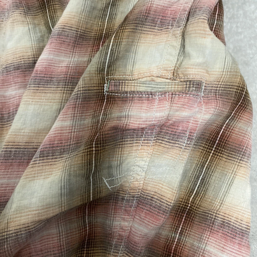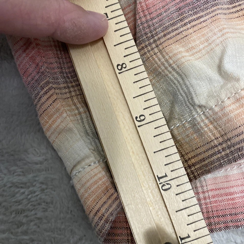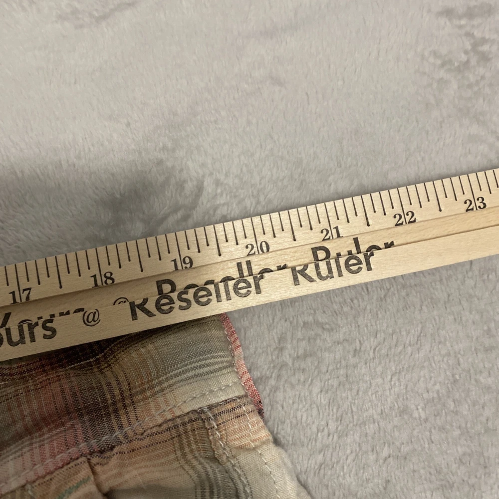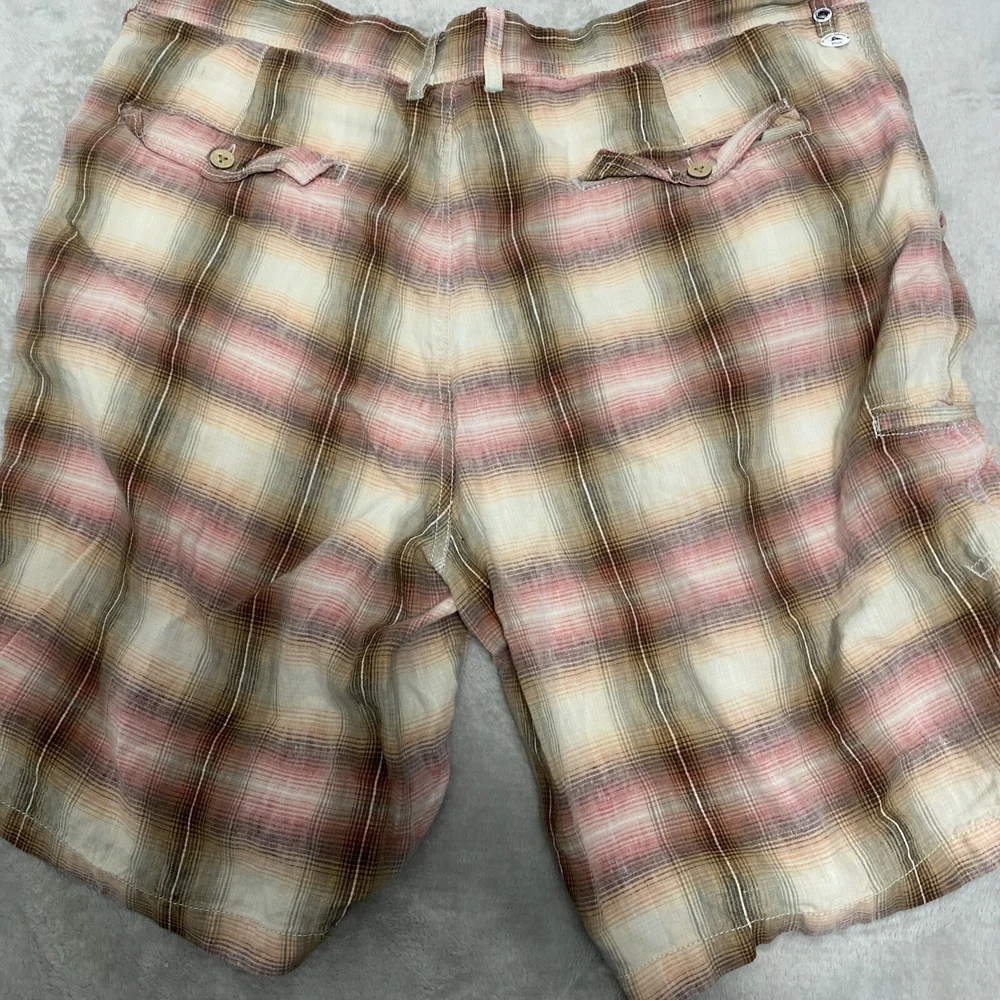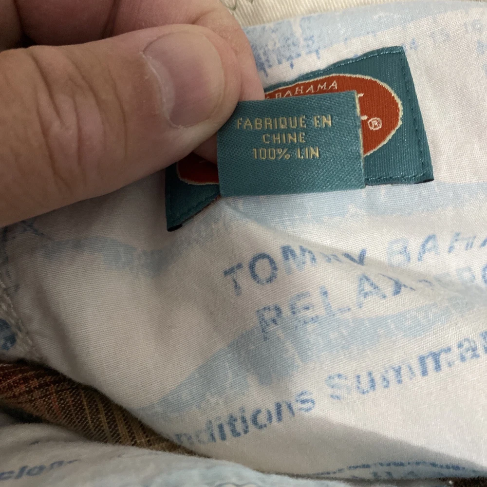 Elevate your casual wardrobe with these stylish Tommy Bahama men's shorts. The plaid pattern in brown and red hues gives off a classic yet modern vibe, while the relaxed fit and flat front design provide ultimate comfort. These Bermuda-style shorts have a zip closure and belt loops for secure wear, and are made of linen material that's perfect for warm weather. With pockets for added convenience, these shorts are versatile enough for outdoor activities or everyday wear. Available in size 40, these shorts are machine washable and suitable for summer, spring, and fall seasons. Add these Tommy Bahama shorts to your collection for a timeless wardrobe staple.