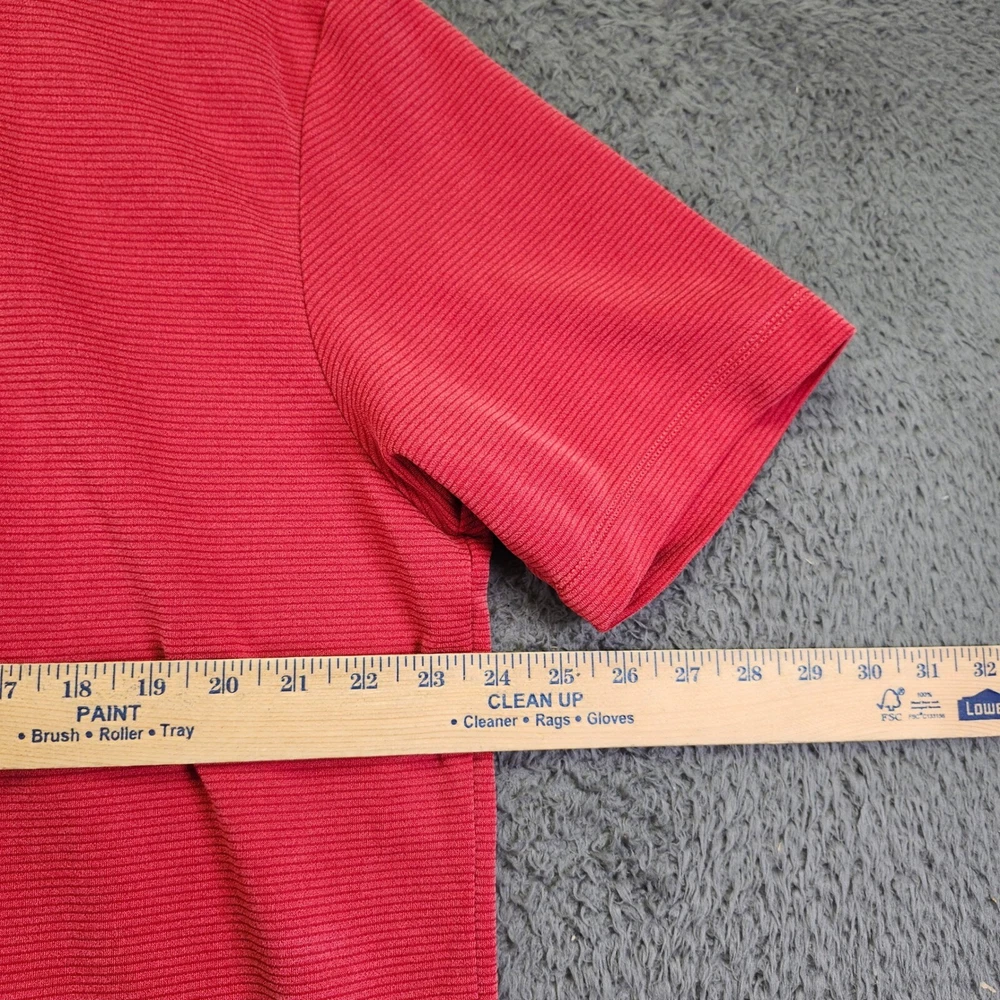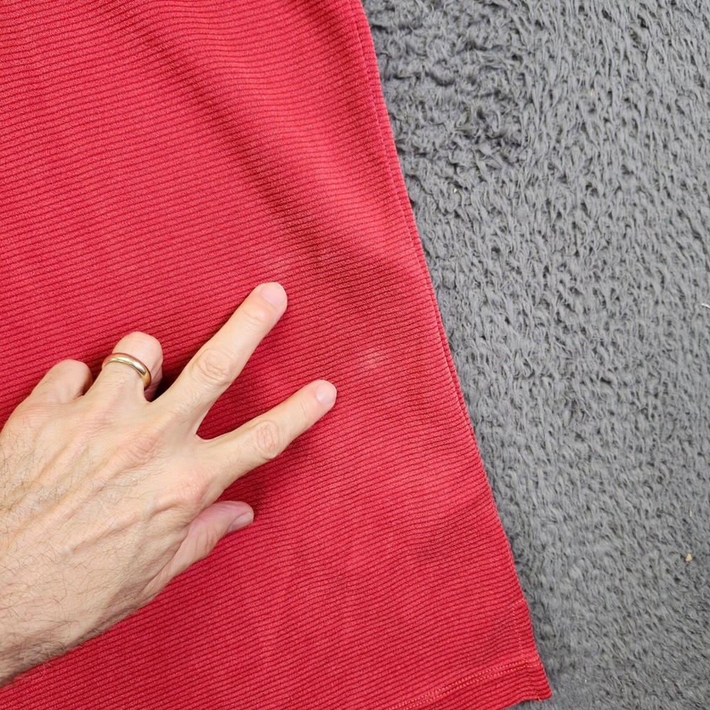 A classic polo shirt, perfect for casual wear. This short-sleeved polo features a three-button placket and a subtle striped pattern throughout. The shirt has a traditional collar and a straight hem. There is a small, faint spot on the front of the shirt. Color: Red Department: Men Type: Polo Performance/Activity: Golf, Walking, Beach, Tennis Sleeve Length: Short Sleeve Fabric Wash: Light Character: Fisherman, Happy, Ken, Captain America, Godzilla Pattern: Striped Fit: Regular Material: Cotton Blend, Polyester Blend, 100% Cotton, 100% Polyester Keywords: Tommy Bahama, polo shirt, men's polo, short sleeve, casual shirt, red polo, striped polo, XL, extra large, men's clothing, polo top, button down, collared shirt, preowned all items have been cleaned and disinfected we stand behind all items we sell so please contact us if you have an issue with any order
