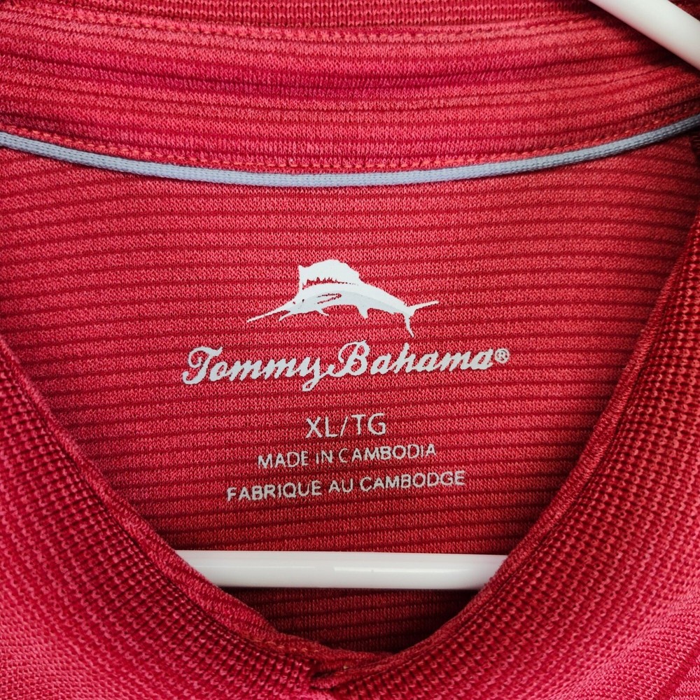 Performance/Activity: Golf, Walking, Beach, Tennis Vintage: No Pattern: Striped Fit: Regular Color: Red Features: Breathable, Stretch, Easy Care, Lightweight Fabric Wash: Light Type: Polo Character: Fisherman, Happy, Ken, Captain America, Godzilla Material: Cotton Blend, Polyester Blend, 100% Cotton, 100% Polyester Brand: Tommy Bahama Sleeve Length: Short Sleeve Neckline: Collared Size: XL Size Type: Regular Department: Men
