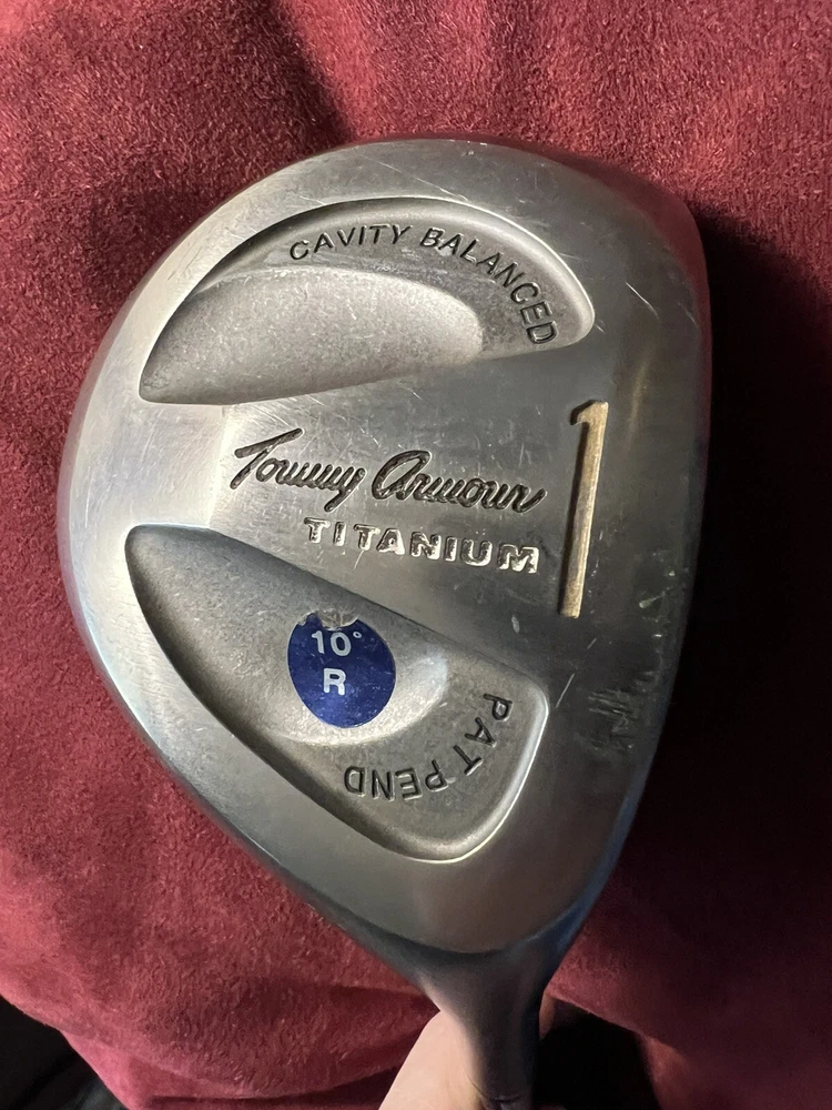 This Tommy Armour driver is an ultralight 1-Wood with a regular flex and a graphite shaft. The head material is made of titanium, giving it a durable and lightweight quality. The loft of the club is 10 degrees, making it a great choice for right-handed golfers. The club is perfect for those looking for a high-quality driver with a sleek design. Its brand, Tommy Armour, is known for producing top-of-the-line golf equipment. This club is a great addition to any golfer's bag and is sure to improve your game. Head cover included. From my brother’s estate 😔