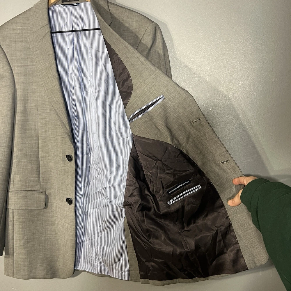 Vintage: No Size Type: Regular Jacket Lapel Style: Notch Lining Material: Polyester Chest Size: 38 Occasion: Business, Casual, Formal, Party/Cocktail, Travel, Wedding Jacket Front Button Style: Two-Button Fit: Athletic Material: Wool Front Type: Flat Front Color: Gray Style: 1 Piece Waist Size: N/A Leg Style: N/A Personalization Instructions: N/A Pattern: Solid UPC: Does Not Apply Jacket Vent Style: Double-Vented gtin13: Does Not Apply California Prop 65 Warning: N/A Features: Inner Pockets Department: Men Type: Blazer Jacket Cut: Single-Breasted Brand: Tommy Hilfiger Inseam: N/A Number of Pieces: 1-Piece Fabric Type: Wool Theme: City, Classic, Dad, Designer, Preppy, Sports, University, American Jacket Sleeve Button Style: Four-Button Size: 38 Personalize: No Jacket/Coat Length: Regular Handmade: No Season: Fall, Spring, Summer, Winter Garment Care: Dry Clean Only Country/Region of Manufacture: United States