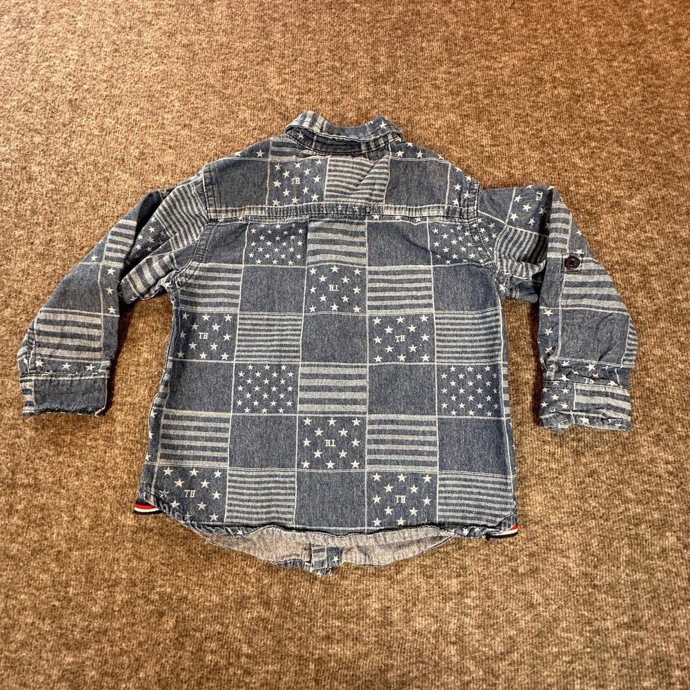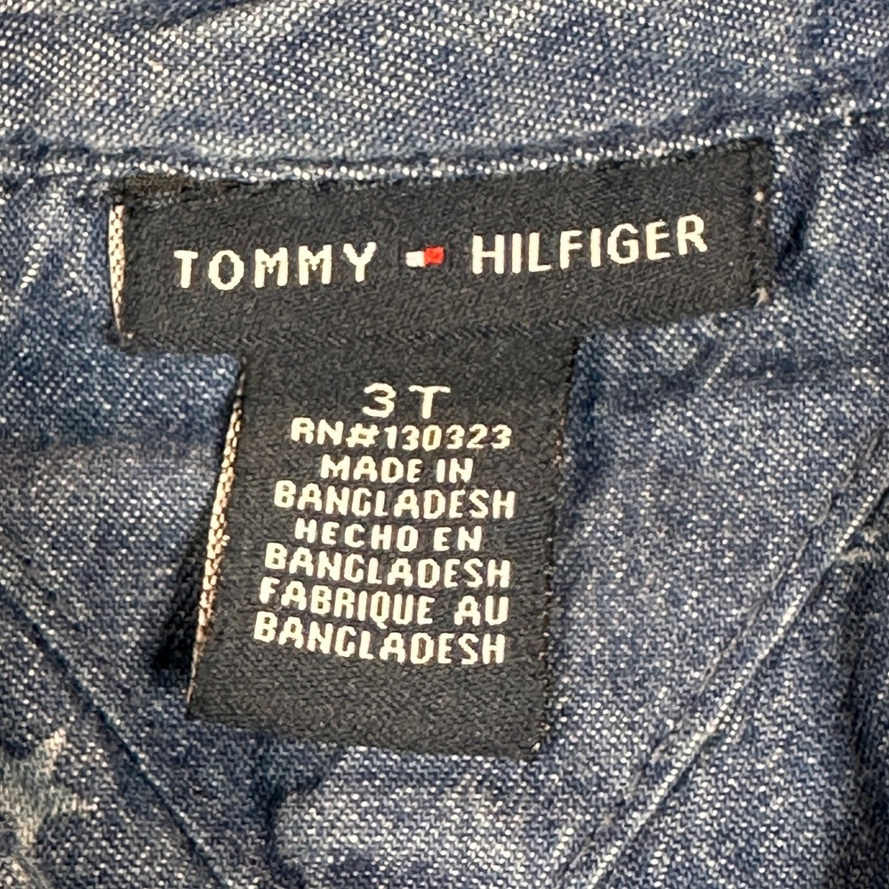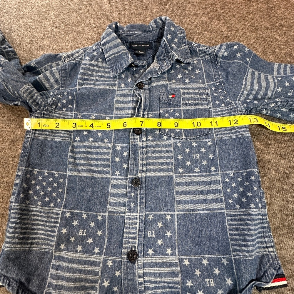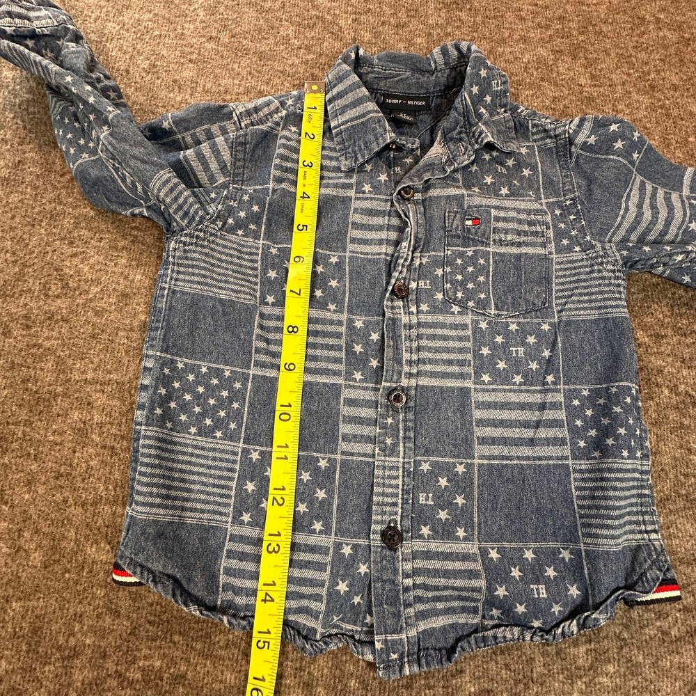 Garment Care: Machine Washable Season: Fall, Spring, Winter, Summer Vintage: No Style: Basic Country/Region of Manufacture: Bangladesh Size: 3T Seller Notes: “Excellent used condition (EUC). No flaws noted.” Closure: Button Brand: Tommy Hilfiger Sleeve Length: Long Sleeve Color: Blue Theme: Patriotic Department: Boys Fabric Type: Denim Handmade: No Pattern: Graphic Print Personalize: No Type: Button-Up Material: 100% Cotton Neckline: Collared