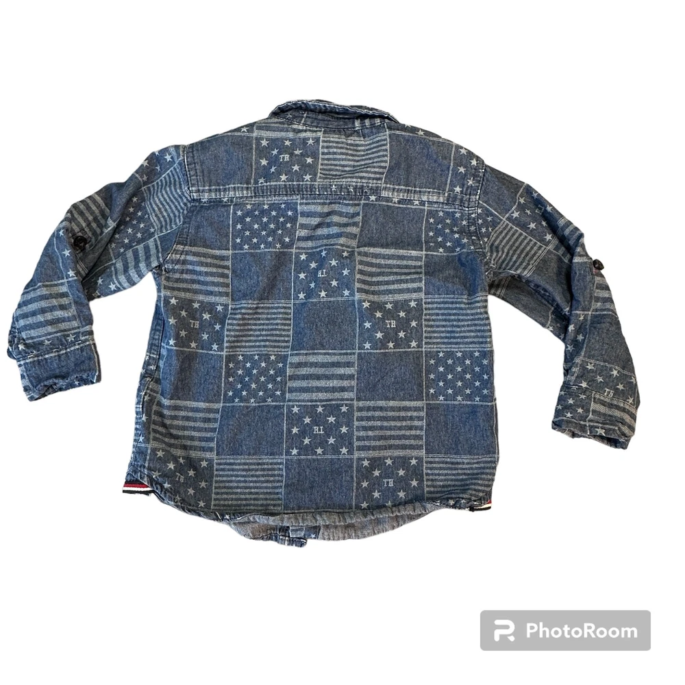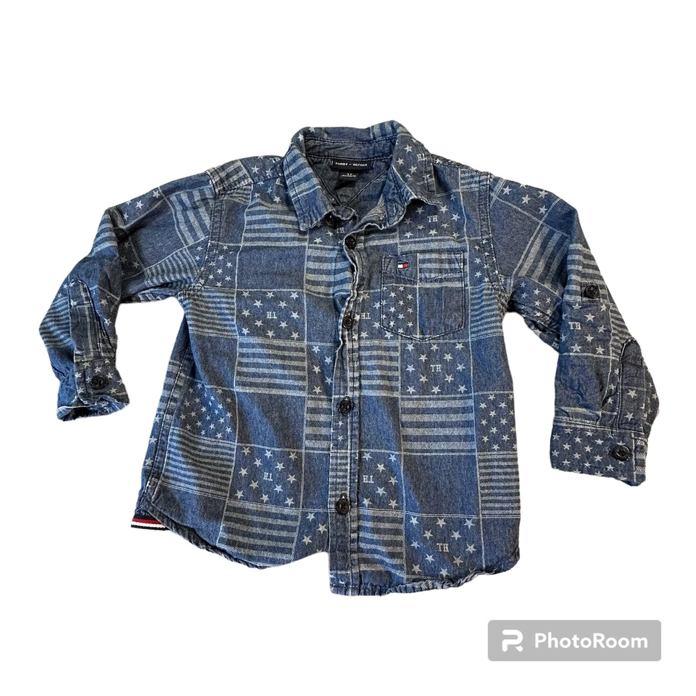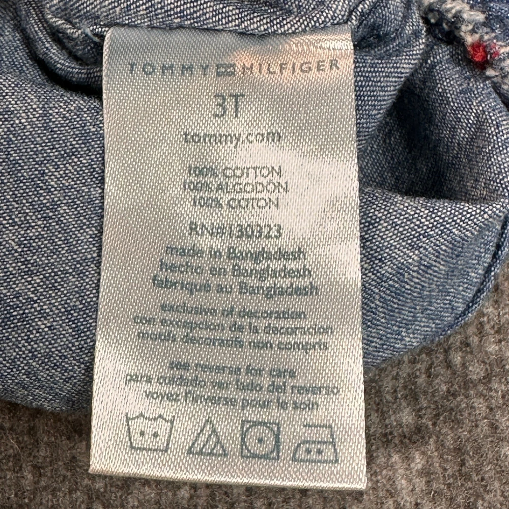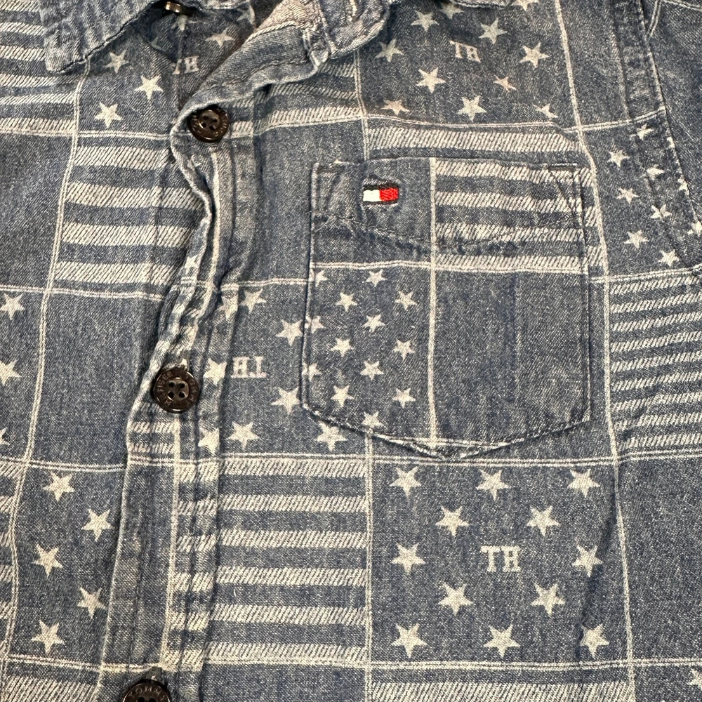 Garment Care: Machine Washable Season: Fall, Spring, Winter, Summer Vintage: No Style: Basic Country/Region of Manufacture: Bangladesh Size: 3T Seller Notes: “Excellent used condition (EUC). No flaws noted.” Closure: Button Brand: Tommy Hilfiger Sleeve Length: Long Sleeve Color: Blue Theme: Patriotic Department: Boys Fabric Type: Denim Handmade: No Pattern: Graphic Print Personalize: No Type: Button-Up Material: 100% Cotton Neckline: Collared