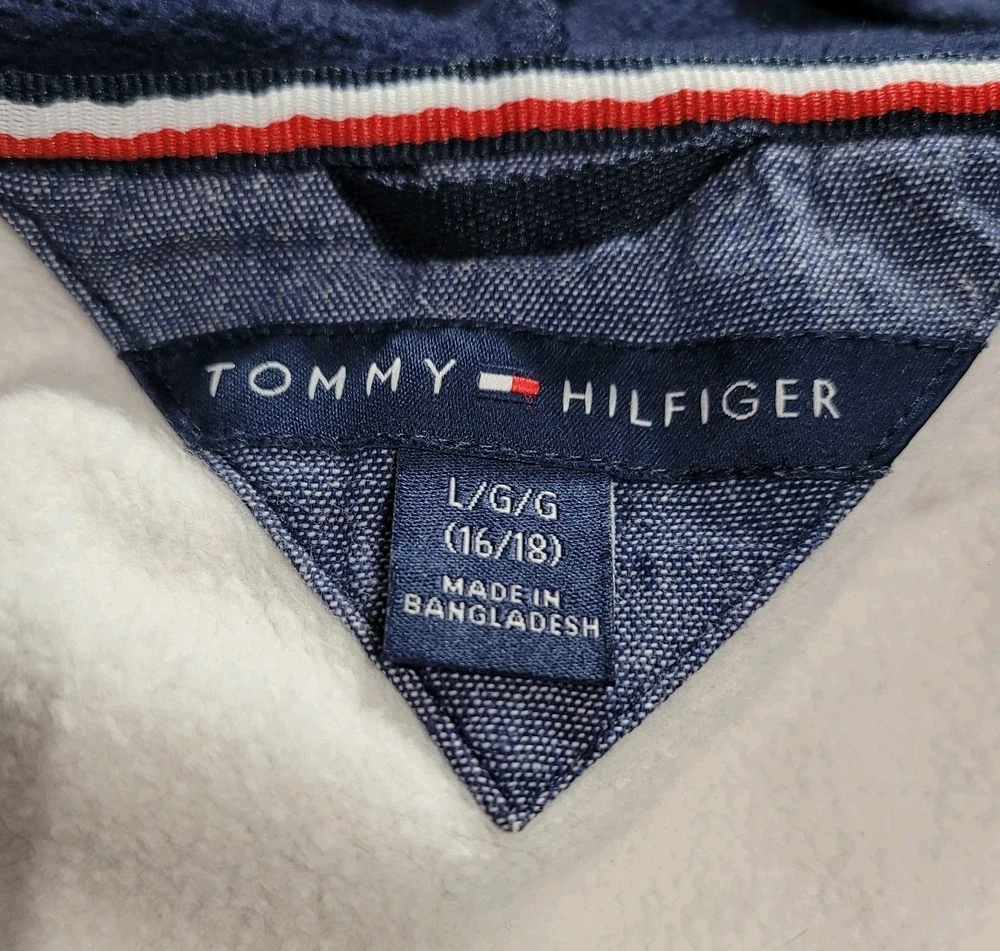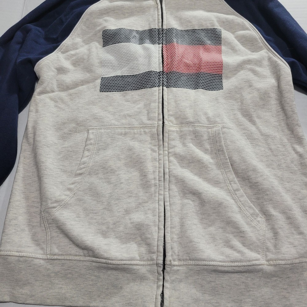 The product is a TOMMY HILFIGER SIZE LARGE 16/18 Youth Boy's Logo Graphic Hoodie Zip Sweatshirt. This multicolor sweatshirt features a solid pattern, long sleeves, and a zip closure. It is made of blended fabric and includes a logo accent. With a regular fit and featuring pockets, this sweatshirt is designed for boys and is a stylish addition to any young boy's wardrobe. this hoodie combines comfort and style for a classic Tommy Hilfiger look. PRE-OWNED PLEASE, for more details, see pictures 📸 and check out my store for more items. Any questions I will gladly answer your message Thanks for looking!