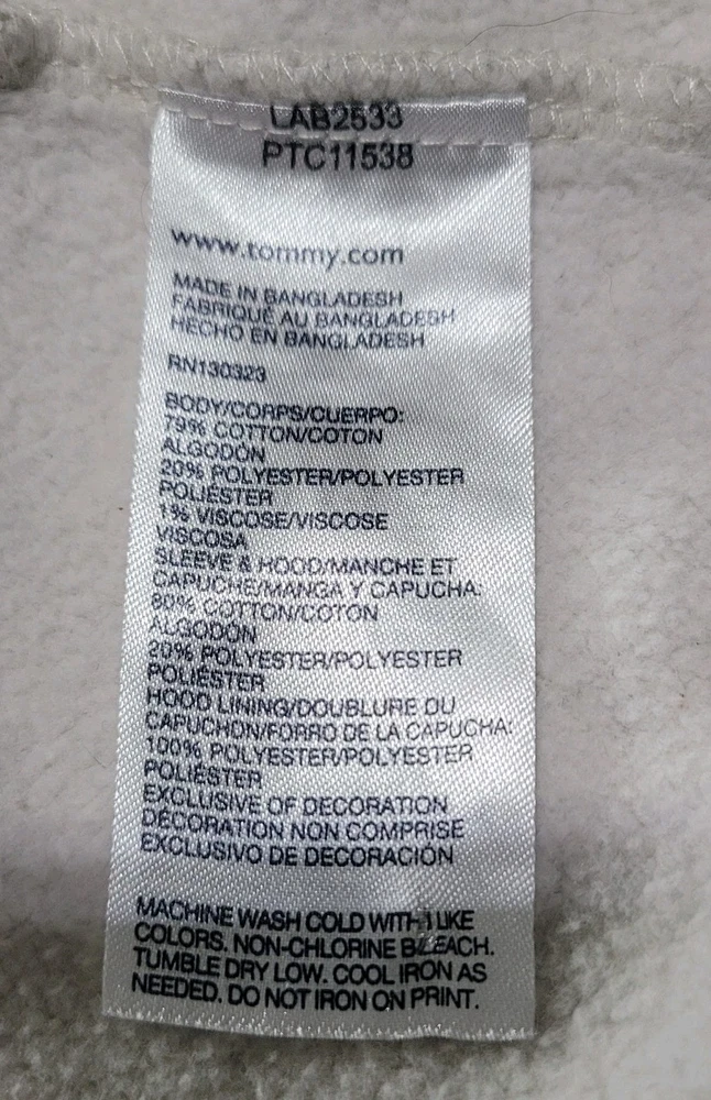 Type: Sweatshirt Style: Full Zip Accents: Logo Fit: Regular Size: L Pattern: Solid Fabric Type: Blended Fabric Features: Pockets Color: Multicolor Department: Boys Country/Region of Manufacture: Bangladesh Closure: Zip Brand: Tommy Hilfiger Sleeve Length: Long Sleeve Character: Boy