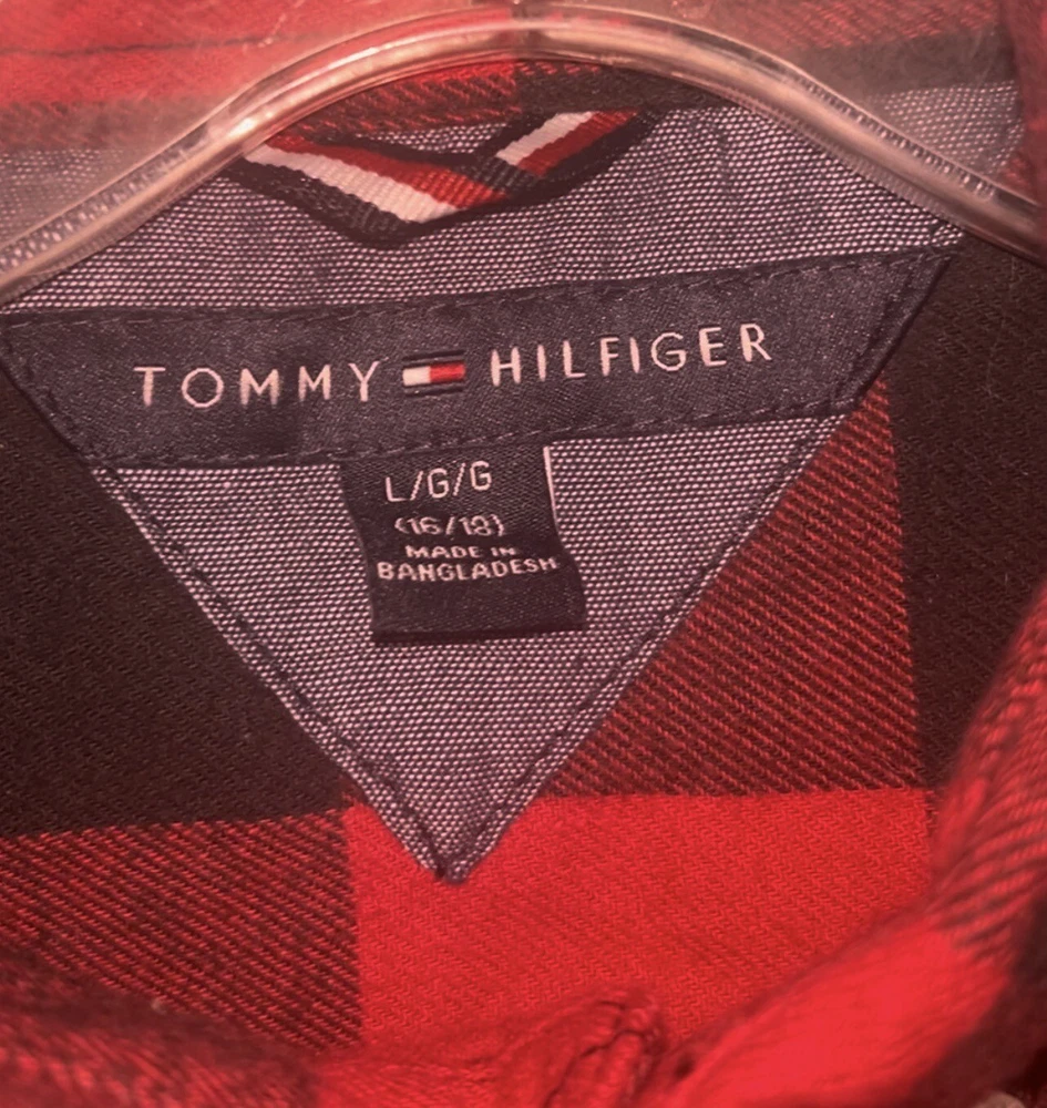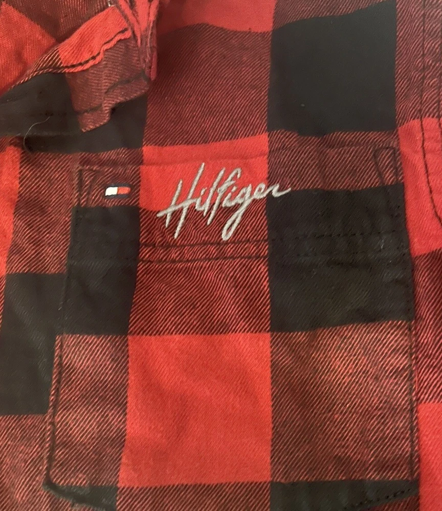 Tommy Hilfiger Checkered Plaid Long Sleeve Button Down Size Large (16-18) youth boys Pre owned