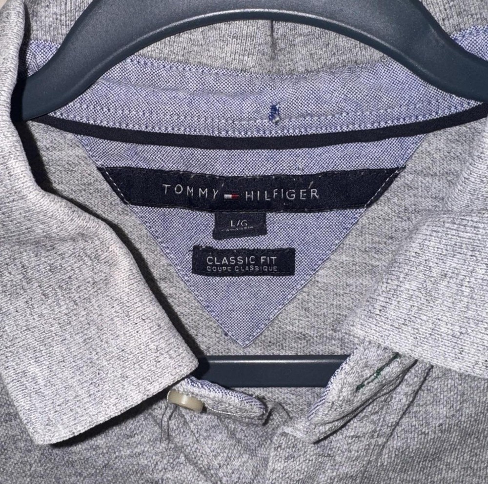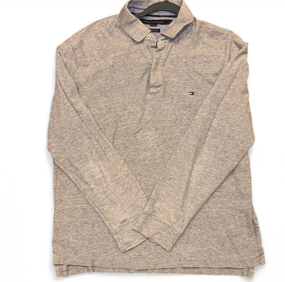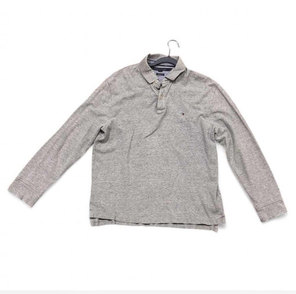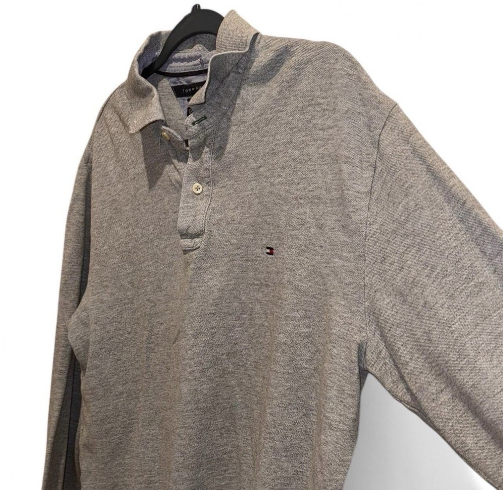 Tommy Hilfiger Classic Fit Mens Large Grey Long Sleeve Polo