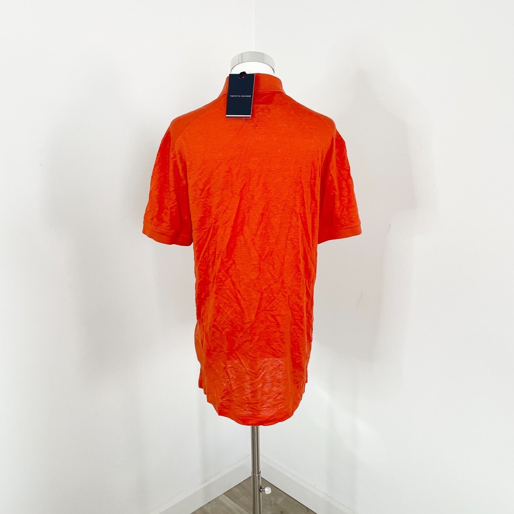 Tommy Hilfiger DC Linen Polo Mens M Florence Orange Short Sleeve Regular Fit New Brand New With Tags Sample Measurements: Shoulder to shoulder: 45 cm Underarm to underarm: 50 cm Length: 73 cm All clothing is measured laying flat, to get the correct measurements.