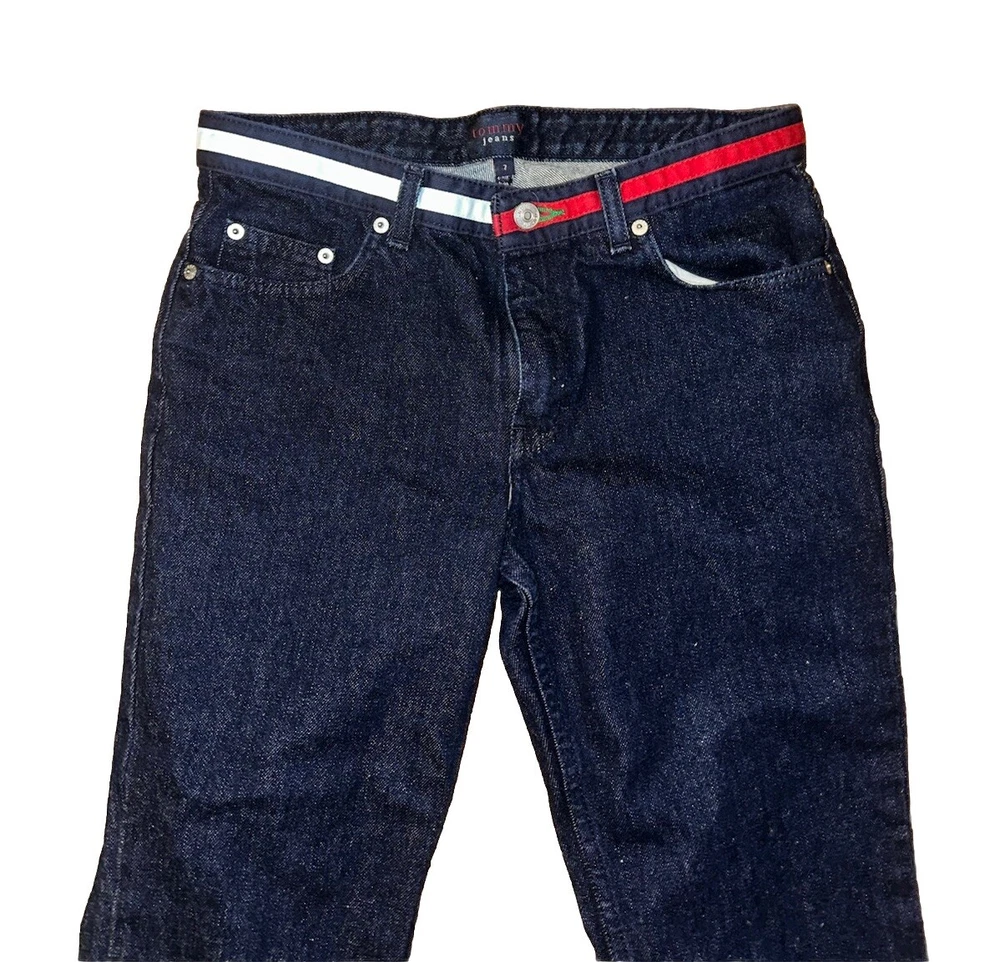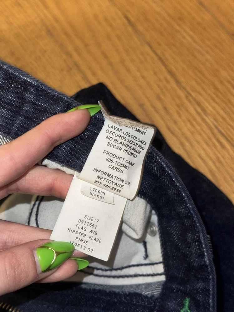 Tommy Hilfiger Flag Hipster Flare Jeans Womens 7 Denim Blue Vintage Y2K. Condition is Pre-owned. Shipped with USPS Ground Advantage.