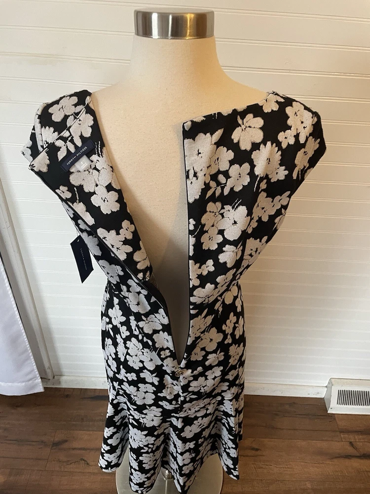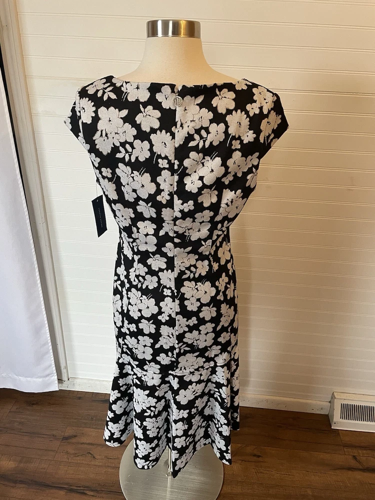Tommy Hilfiger Floral Knit Square Neck Retro Flare Dress, Size 16, New With Tags, Excellent Condition, Gorgeous dress, Flared Out Hemline, with a classic retro touch, Originally $134!