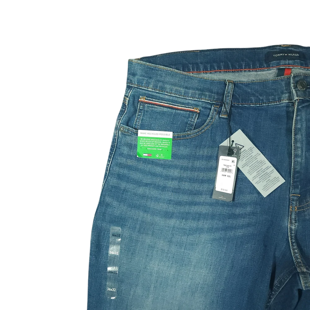 Tommy Hilfiger Jeans 36x32 Mens Stretch Straight Baggy Mid Rise Recycled Cotton Rinse Wash Whiskering These classic americana 5 pocket jeans will sit at or slightly below your waist and provide a baggy straight fit, tapered leg look. They have the rinse/dark wash and visible whiskering. They are made from reprocessed/recycled cotton as one of the components. Get them before they are gone!! Product Details Waist 38 inches Inseam 29 inches Rise 11.5 inches Leg 17 inches Thigh/Hip 48 inches Knee 19 inches Material 79% cotton/20% reprocessed cotton/1% elastane Imported Bangladesh I ship the same day if the order is received by 1 PM EST or ship the next day utilizing recycled, sustainable packaging and materials. I do not ship to Belarus, Russia, Mexico, Vietnam, and Germany due to national shipping requirements/restrictions. I offer automatic combined shipping and also I offer bundle and shipping discounts for 2 or more items purchased in my store. Buyer is responsible for the payment of all import fees if international sale. I accept returns if permitted by the platform that the item was purchased on within 30 days of delivery date. Items must be returned in the condition received. International returns are at the buyer's expense. All clothing items have been steam cleaned and/or washed. If you have questions, I will respond as quickly as I can.