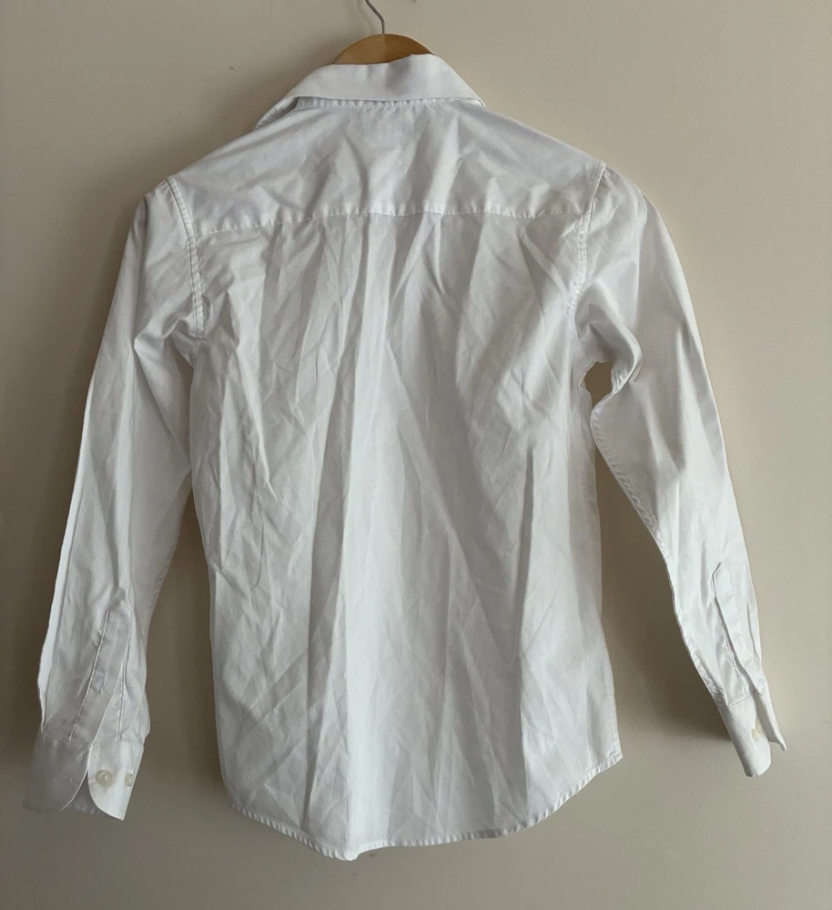 Tommy Hilfiger Kids Boys Solid White Cotton Blend Button-Up Long Sleeve Shirt 12. Condition is pre-owned. Smoke free, pet free home. Shipped via USPS Ground Advantage. In good condition. There are light stains on the sleeve. Free of rips.