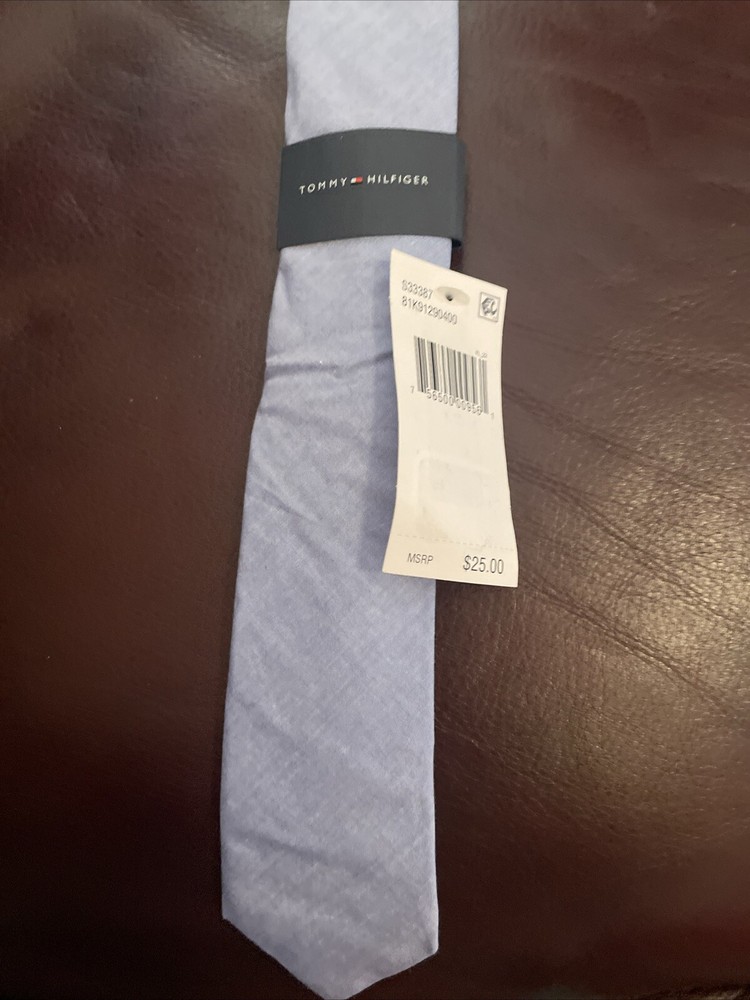 This is a Tommy Hilfiger men's tie in a light blue color.