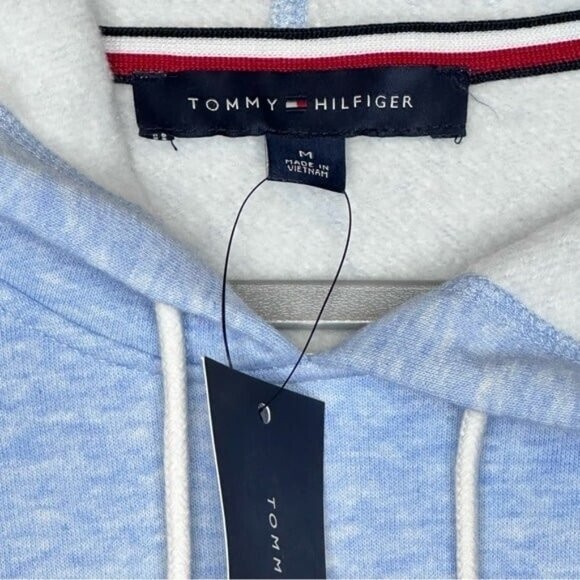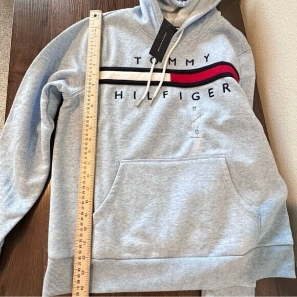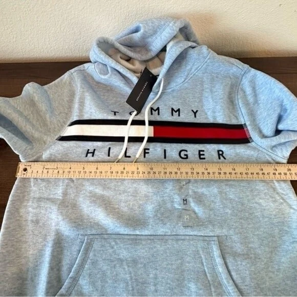 Organic cotton blend flex fleece Drawstring hooded neck Rib-knit cuffs and hem Tommy Hilfiger logo on front 60% Cotton - 40% Polyester Size Medium Measurements in Pictures. NWT A
