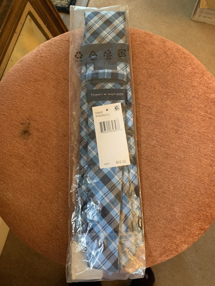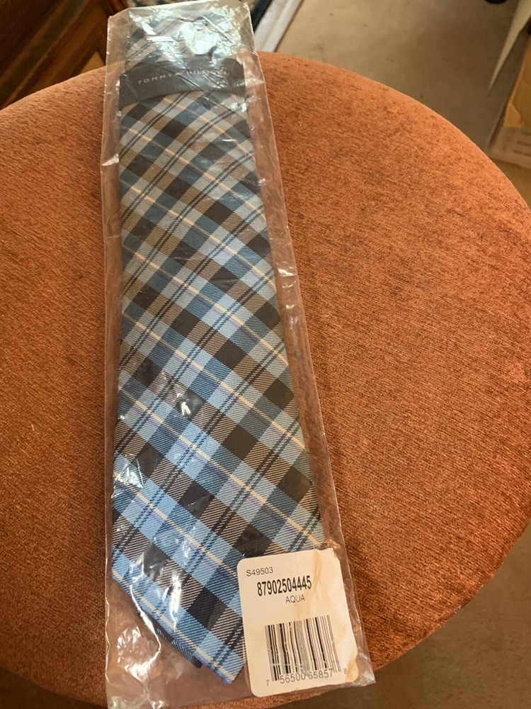 Tommy Hilfiger Aqua Plaid Necktie for men is a stylish accessory featuring a plaid pattern in shades of aqua. Perfect for adding a pop of color and pattern to any formal or casual outfit.