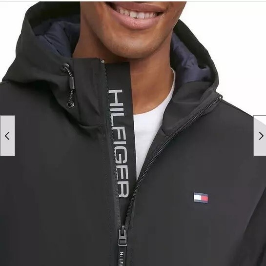 Elevate your style with this Tommy Hilfiger Men's Softshell Performance Jacket in Black. Made with a polyester outer shell and nylon lining material, this mid-length bomber jacket is perfect for travel, casual outings, and business meetings. It features a zip closure, hooded design, and accents such as a zipper and logo. This jacket is available in size L and has a regular fit. It's suitable for men who want to stay warm in fall and winter seasons without compromising on style. Whether you're a fan of Tommy Hilfiger or simply looking for a versatile jacket, this item is a great addition to any wardrobe.
