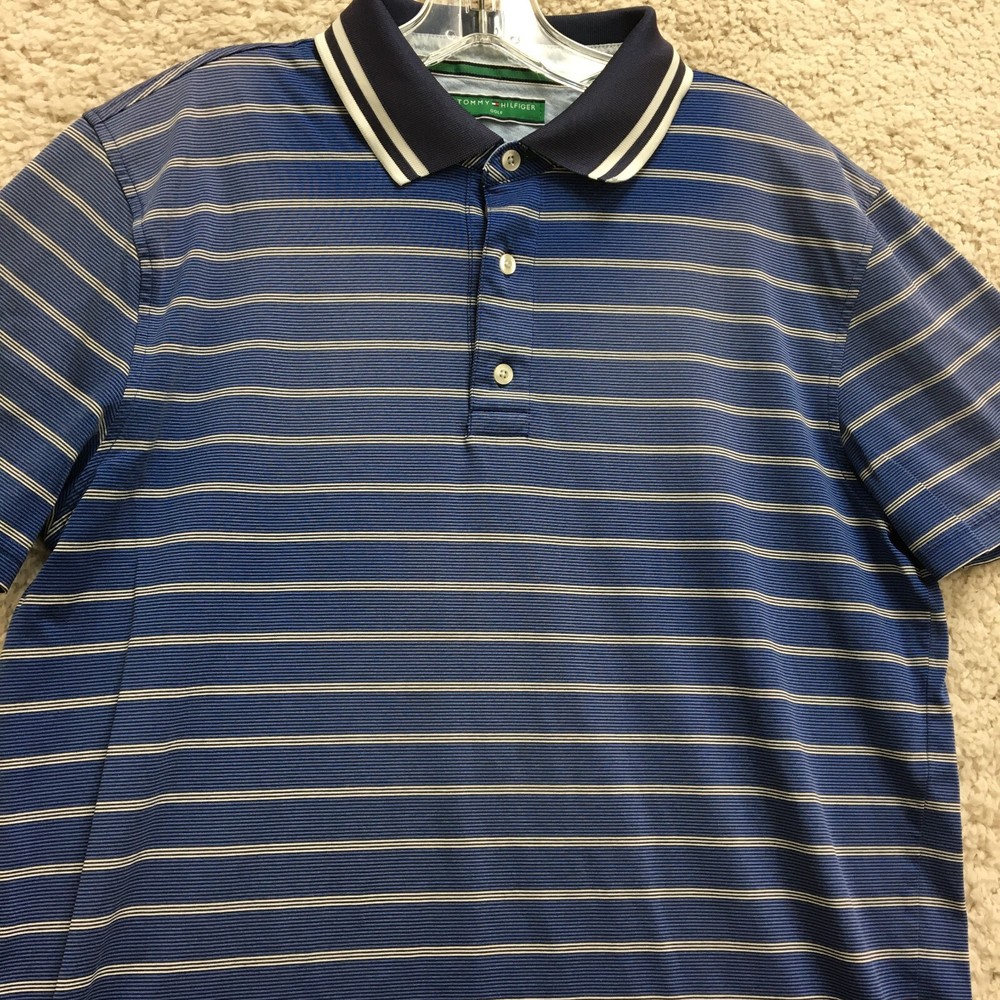 Features: All Seasons, Breathable, Easy Care Neckline: Collared Shirt Length: 27 in Material: Cotton Seller Notes: “Good Used Condition. Please, See pictures for Full Condition and Measurements” Size: M Chest Size: 38 in Color: Blue Accents: Button, Embroidered, Logo Vintage: Yes Fit: Regular Sleeve Length: Short Sleeve Performance/Activity: Driving, Golf, Rugby, Walking Occasion: Activewear, Casual, Travel Type: Polo Fabric Type: Knit Garment Care: Machine Washable Pattern: Striped Season: Fall, Spring, Summer, Winter Collar Style: Spread Brand: Tommy Hilfiger Fabric Wash: Medium Size Type: Regular Theme: Outdoor, Sports Closure: Button Department: Men