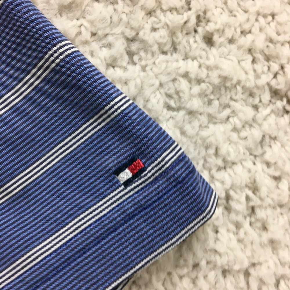 Tommy Hilfiger Mens Blue Striped Polo Shirt Medium Short Sleeve Golf Top