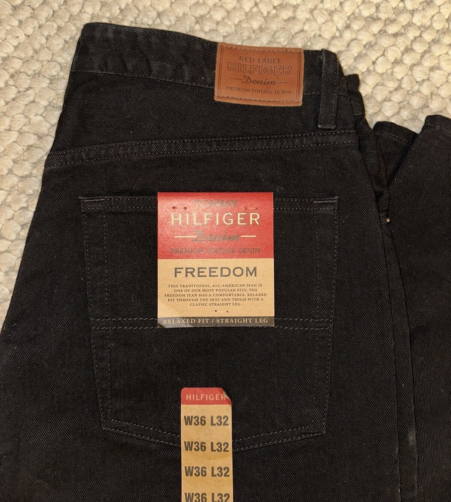 Tommy Hilfiger Men’s Freedom Relaxed Fit Black Denim Jeans 36x32