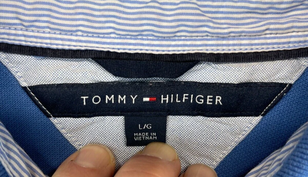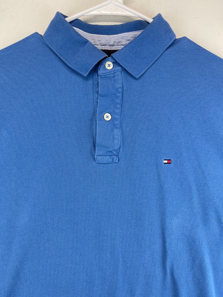 This Tommy Hilfiger Polo Shirt is a stylish addition to any man's wardrobe. Made from 100% cotton knit fabric, it features a classic blue color with the brand's iconic logo accent. The collared shirt with a button closure is versatile for various occasions such as casual wear, workwear, and even parties. With a comfortable regular fit and short sleeves, this breathable shirt is suitable for all seasons, making it a timeless and practical choice for any man looking for a classic and preppy polo shirt. Very good preowned condition with normal preowned wear and a few loose threads on the inner seam as pictured. Please see all photos; specifically for measurements. For clothing specifically, see photos for all measurements and/or any issues if applicable. Pay close attention to the measurements as the size of the garment may quite possibly be different than the actual measurement(s) due to washing, shrinkage, or stretching as these are used clothes. The size in the title is the size on the tag of the garment. See photos for measurements of actual measurements as they may differ. ALWAYS CHECK THE MEASUREMENTS IN THE PHOTOS. This will remove any questions on measurements as well as always cover the possibility of human error in the listing(s) in the case of a typo or oversight. All clothing and shoes have been washed/cleaned, and are cleaned and stored in a smoke free environment. However, please keep in mind that these are preowned items and there is always a possibility of there being preowned dirt, dust, or stray hairs present. I do my best to clean these items with hair collecting products in the dryer after being washed, and by hand with shoes. If shoe trees appear in the photos, they are for photography purposes only to illustrate how the shoes look filled out, and are not included. I am available for questions. I accept or negotiate reasonable offers. Have an amazing day. Thank you.