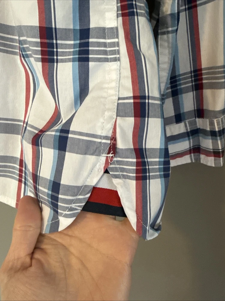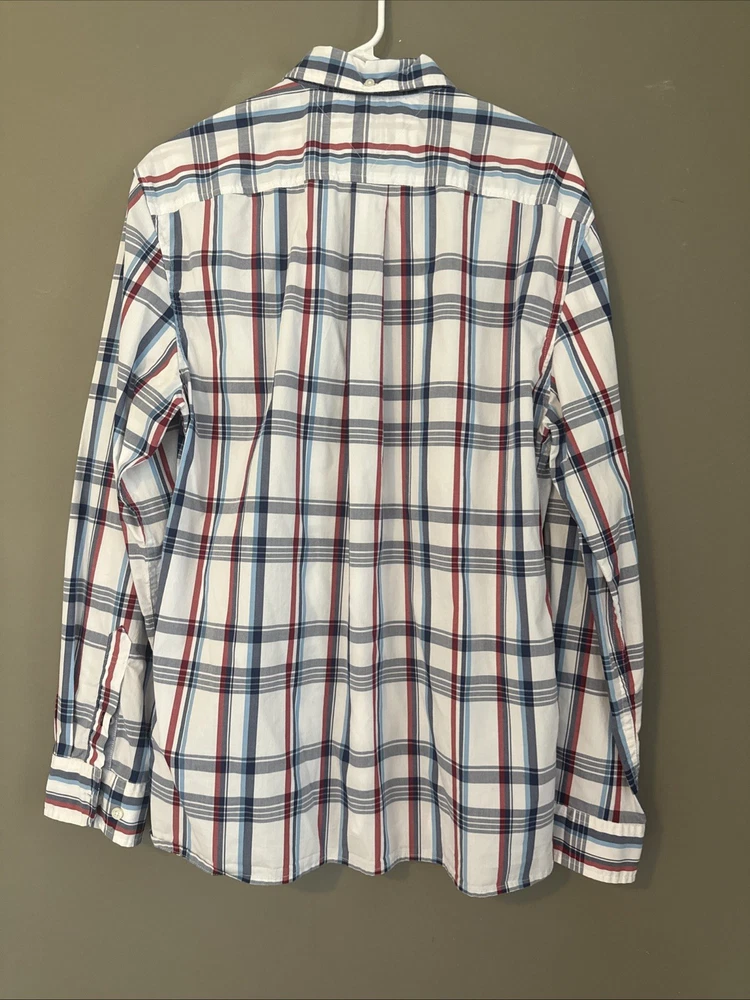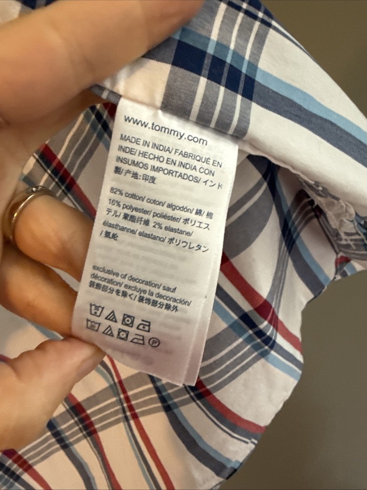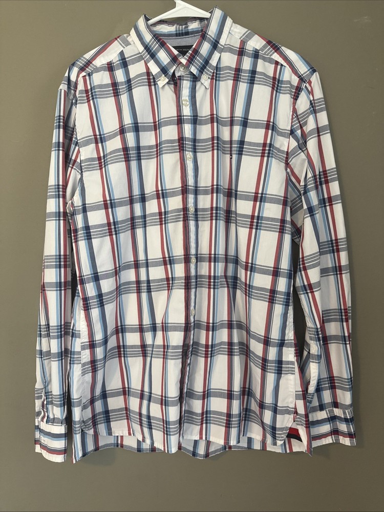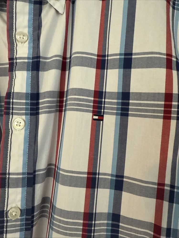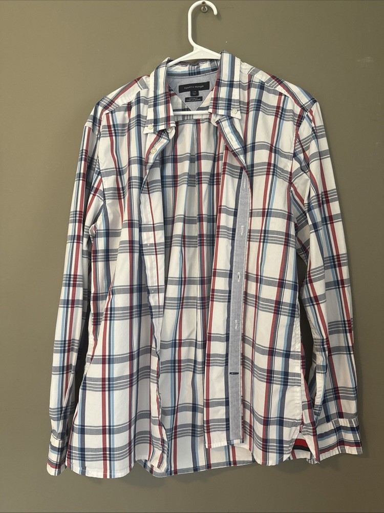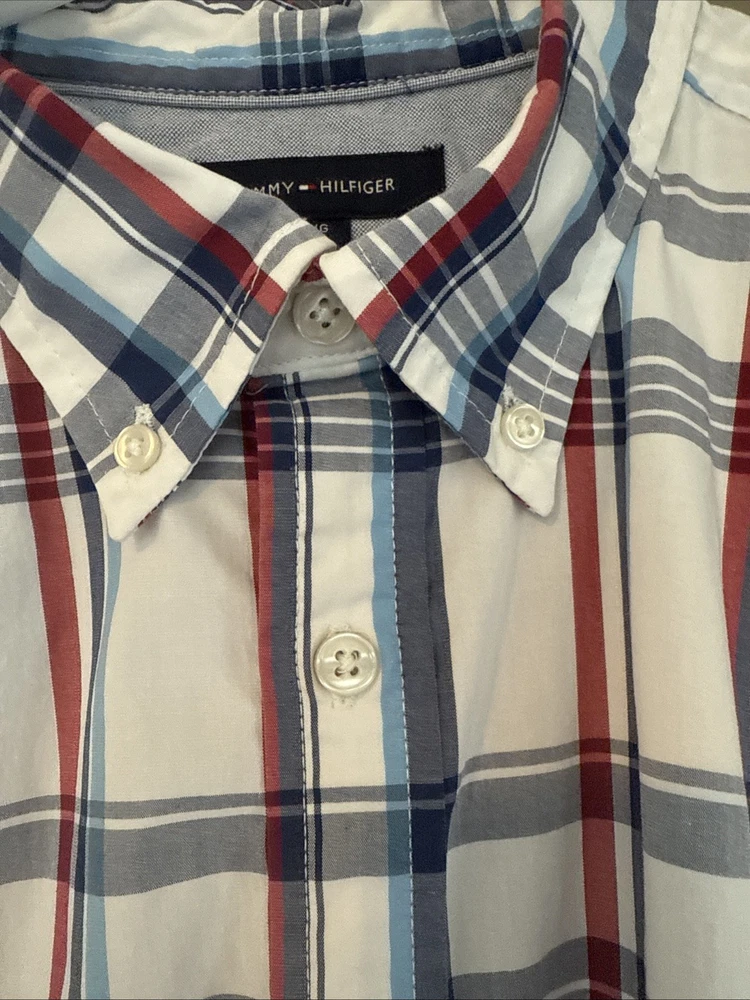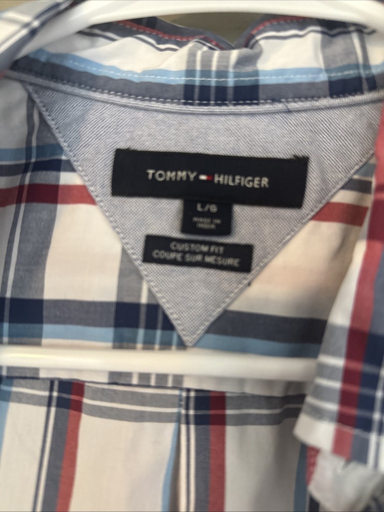 This Tommy Hilfiger Custom Fit Men's Large Plaid Cotton Blend Shirt is a stylish and versatile addition to any man's wardrobe. Made from a comfortable cotton blend fabric with a spread collar and button closure, this shirt is perfect for casual occasions.