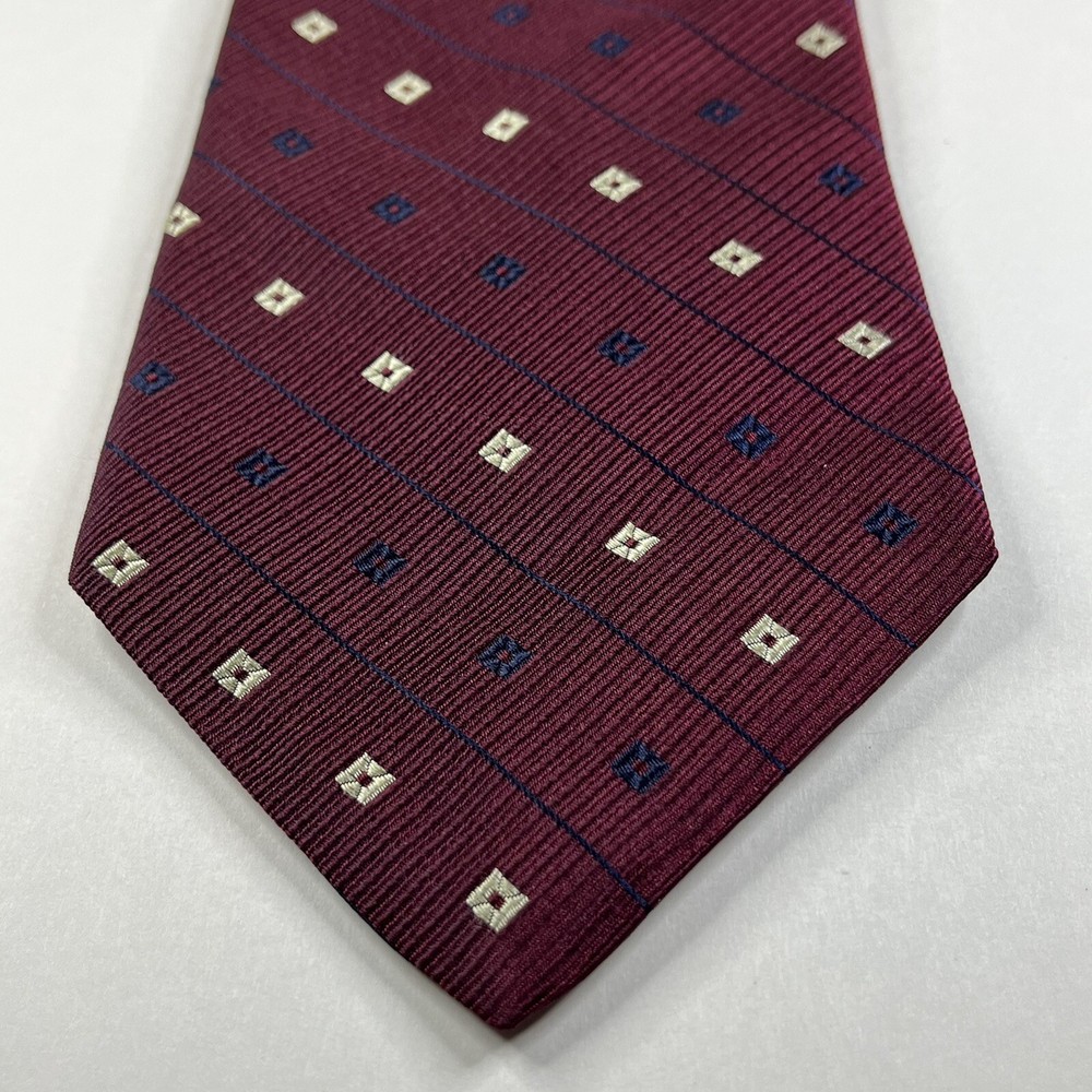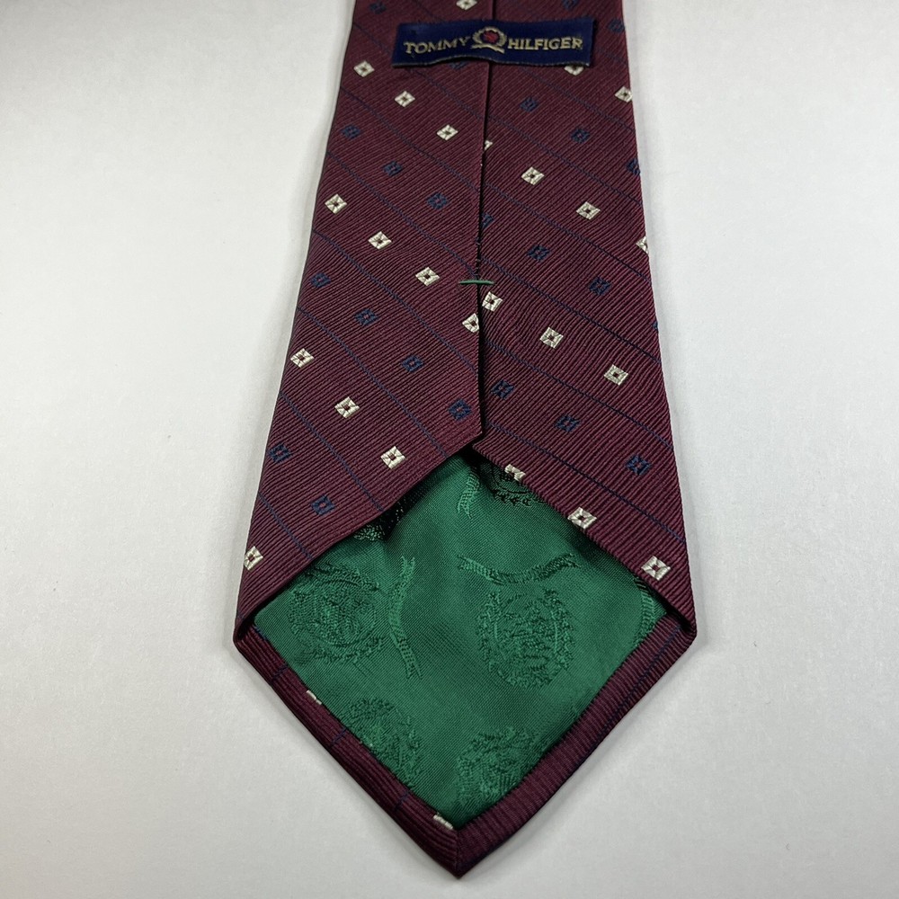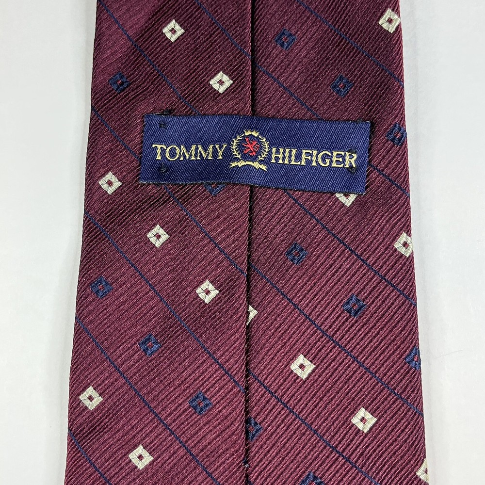 Tommy Hilfiger Mens Silk Tie Burgundy Diamond Striped 57x4 Inches