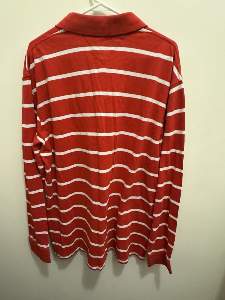 Tommy Hilfiger Men's XL Red & White Striped Long Sleeve Cotton Polo Shirt