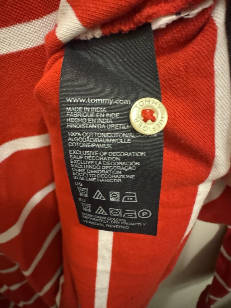 Color: Red Performance/Activity: Beach, Golf, Hiking, School, Walking Accents: Logo Material: Cotton Fabric Type: Knit Season: Fall, Spring, Summer, Winter Size: XL Department: Men Sleeve Length: Long Sleeve Pattern: Striped Brand: Tommy Hilfiger Occasion: Business, Casual, Travel, Workwear Closure: Button Garment Care: Machine Washable Fit: Regular Vintage: No Country/Region of Manufacture: India Type: Polo Size Type: Regular Neckline: Collared