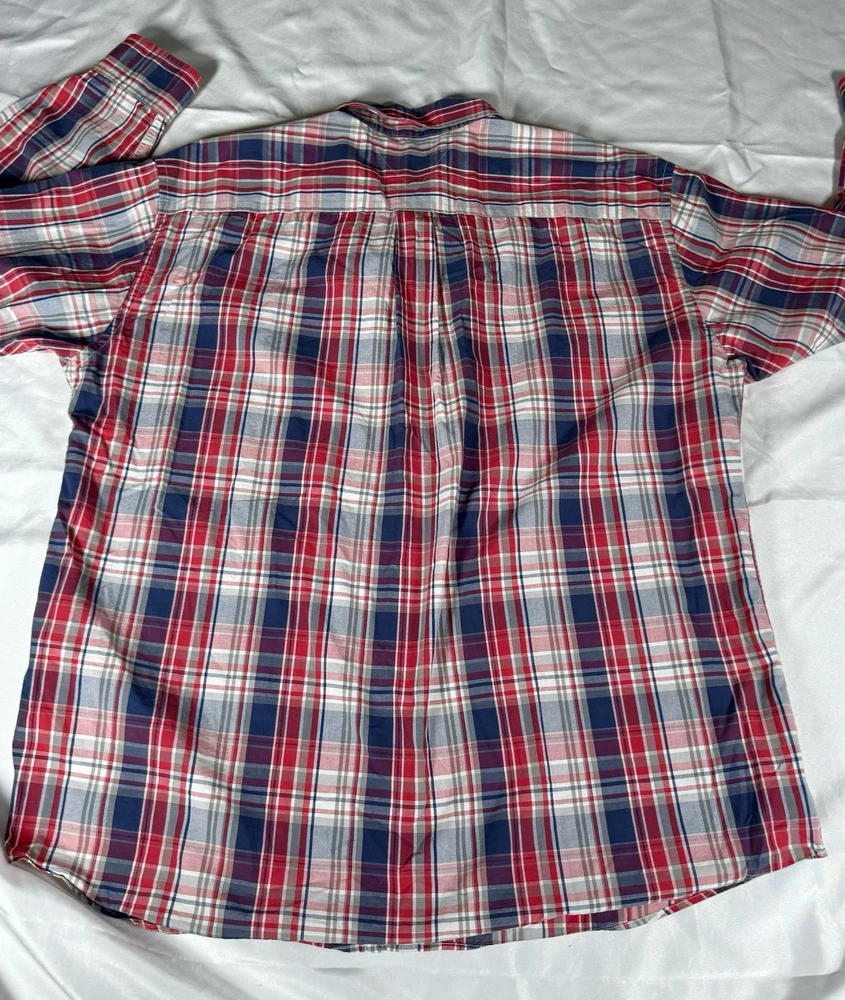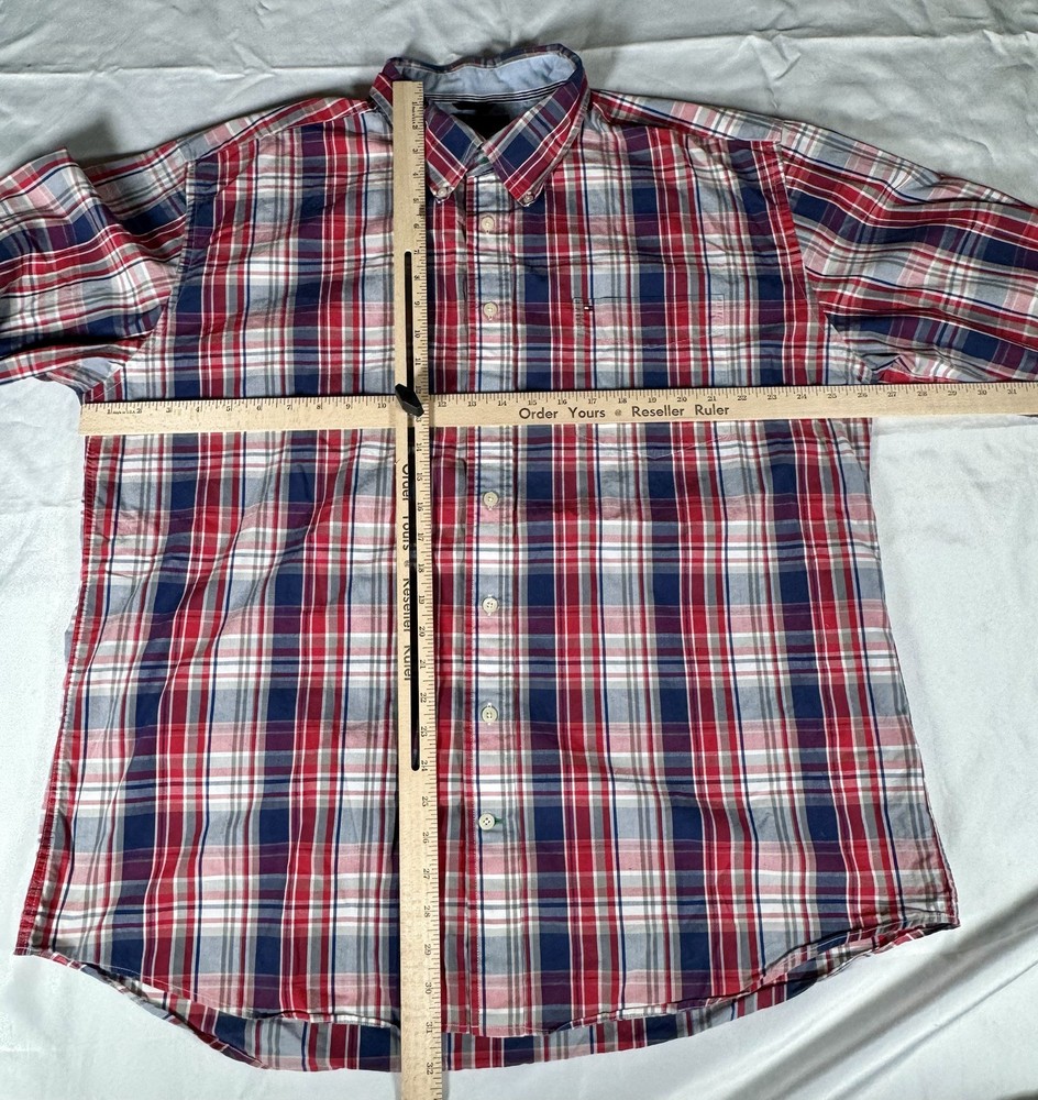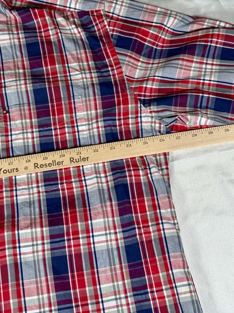 Tommy Hilfiger Mens Shirt XXL Button Down Long Sleeve Multicolor Plaid Vintage USA Patriotic July 4th Independence Day Pre owned in very good condition No rips, stains or tears. Colors may appear different depending on screen or monitor viewed on. See photos for details and measurements.